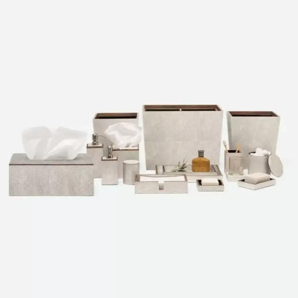 Our new Warm Silver finish has a star-quality metallic sheen that’s a little bit punk rock, a little bit glamour girl. Every piece in the Manchester collection is crafted to mimic the “eye” pattern found in natural shagreen and accented with a veneer trim. The designers at Pigeon & Poodle believe the details of a home are just as important as the furniture. A gorgeous toothbrush holder or handcrafted canister can elevate an entire bath, the perfect frame can heighten the feel of a whole space, and a good-looking storage basket can be your look’s missing link. With thoughtful design and top-notch craftsmanship, Pigeon & Poodle create home accessories with the care and attention typically reserved for larger pieces of décor.