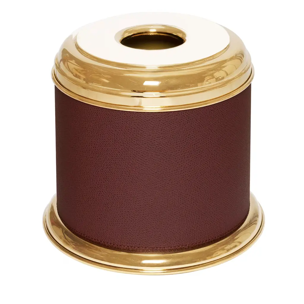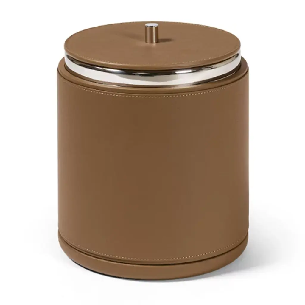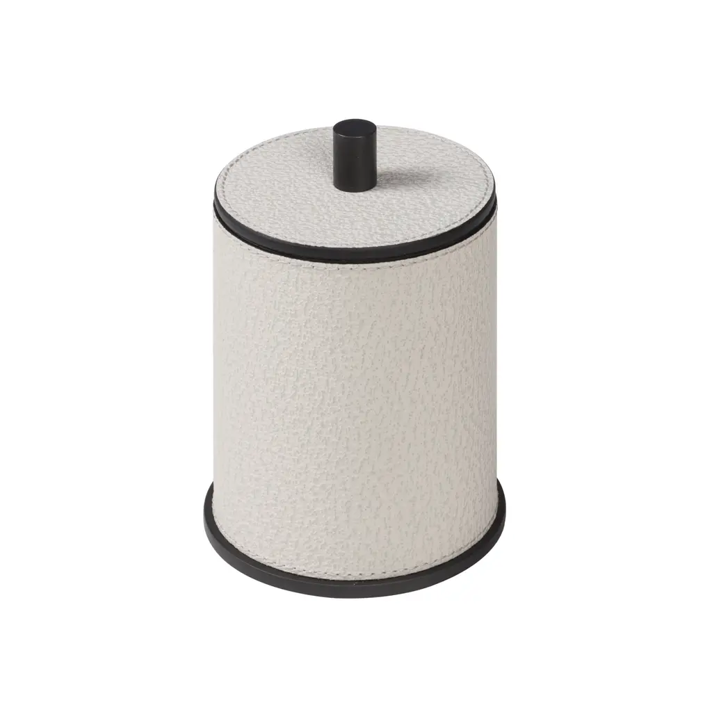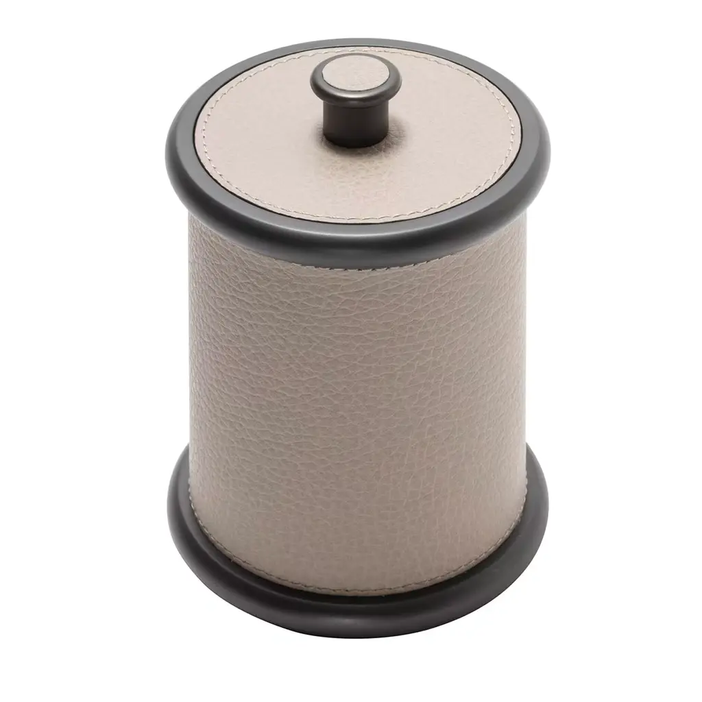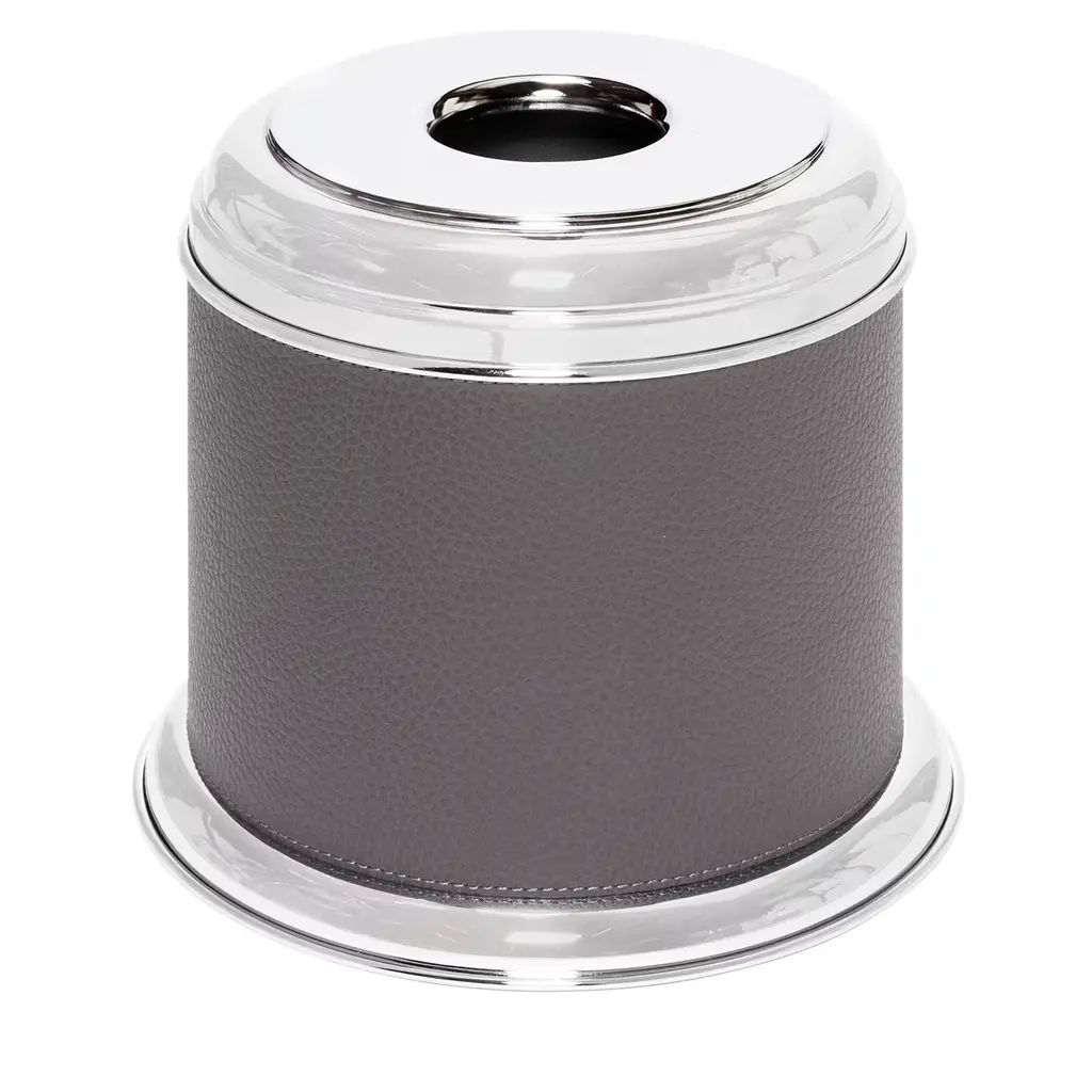 The pieces belonging to this bathroom set boast a characterizing inverted truncated cone metal structure with fine leather inserts. Featuring a series of decorative protrusions and indentations, the Manhattan collection retains a typically modern architectural appeal. Partially leather-covered metal structure. Non-slip waterproof rubber base underneath.