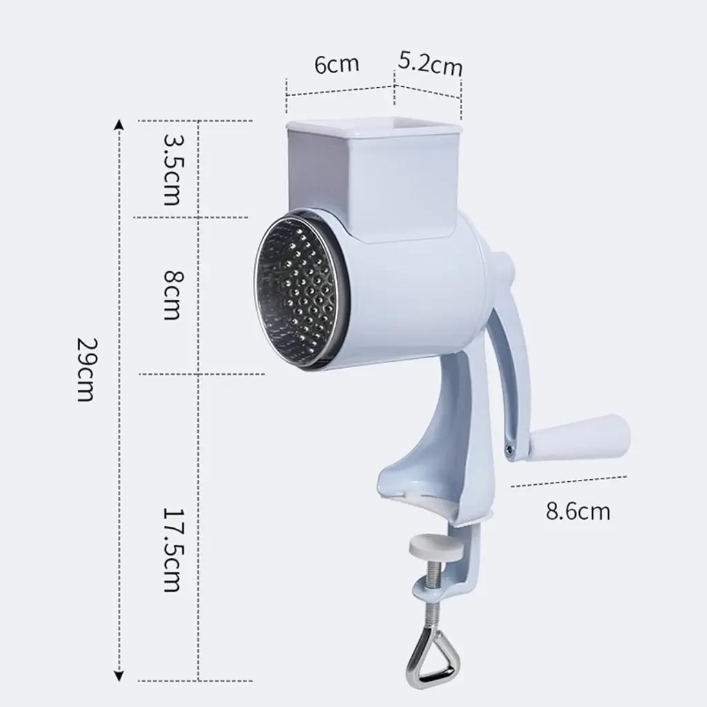 Description: Name: Nut Grinder Material: Aluminum alloy + stainless steel Color: white Function: Grinding Usage: Manual Packing list: Grinding machine x 1 Instruction manual x 1 This versatile kitchen grater features 2 different drum blades, allowing you to adjust the fineness of your ingredients for uniform cuts. Built with durable steel blades and sturdy storage containers, it ensures long-lasting performance and is dishwasher-safe for easy cleaning. Fit for a variety of foods, including cheese, fruits, vegetables, and spices, it guarantees the right consistency every time. The hand crank design provides precise control and energy-efficient manual operation, making it ideal for culinary creations.