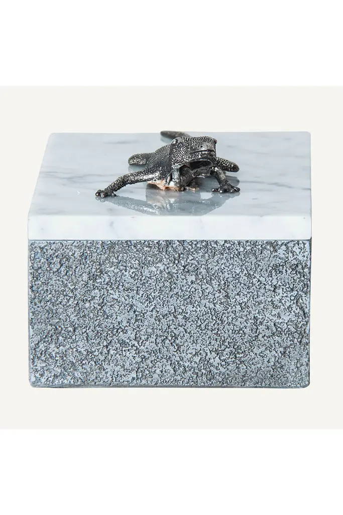 Introducing our Lizard Box - a contemporary piece that oozes sophistication and elegance. The luxurious white and antic grey marble exudes exclusivity. Store your treasures in style with this exquisite addition to your collection.