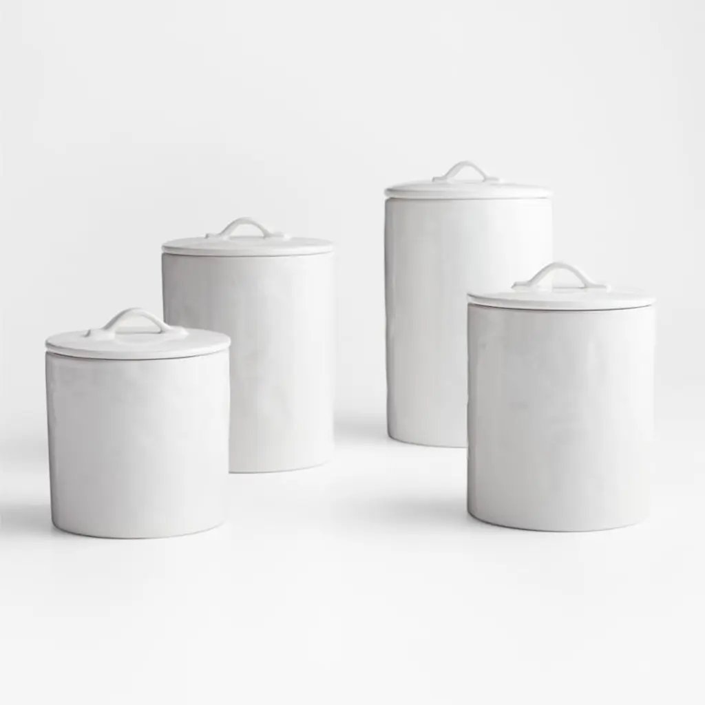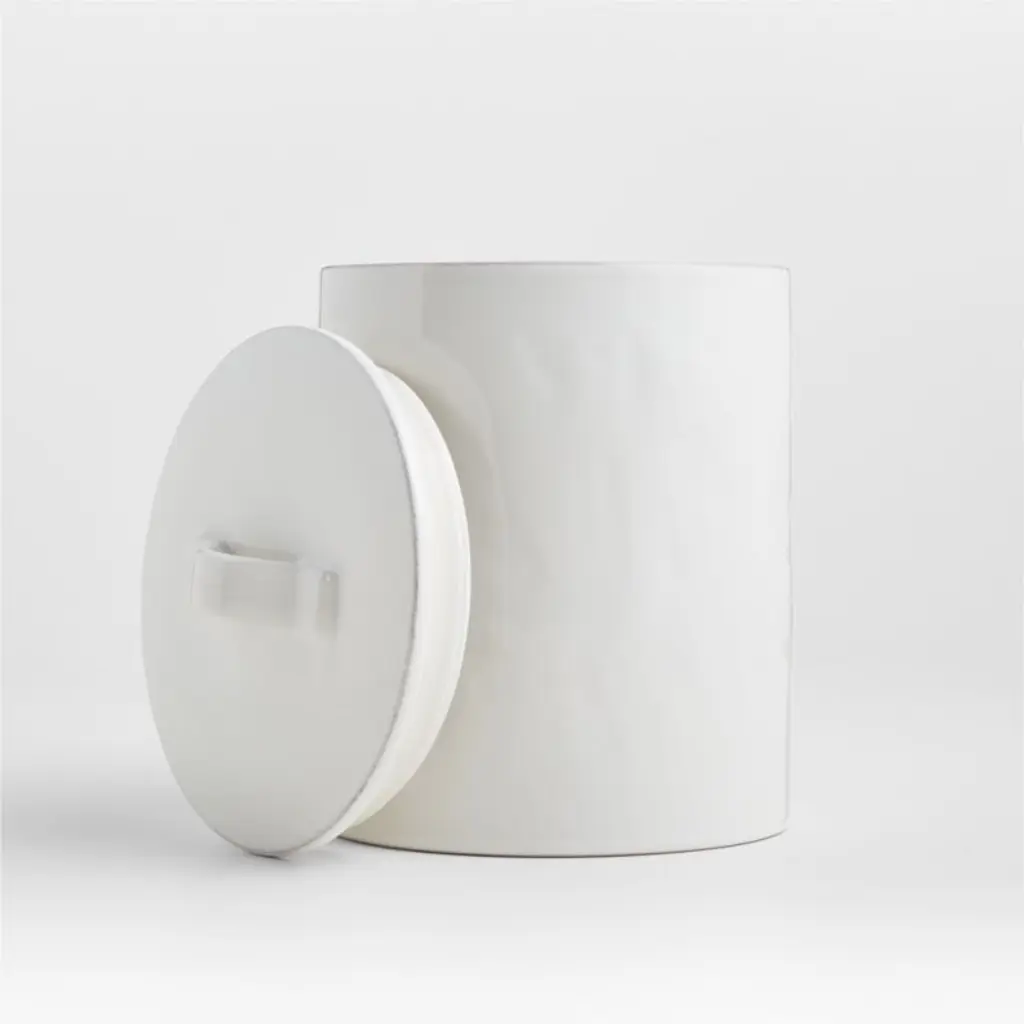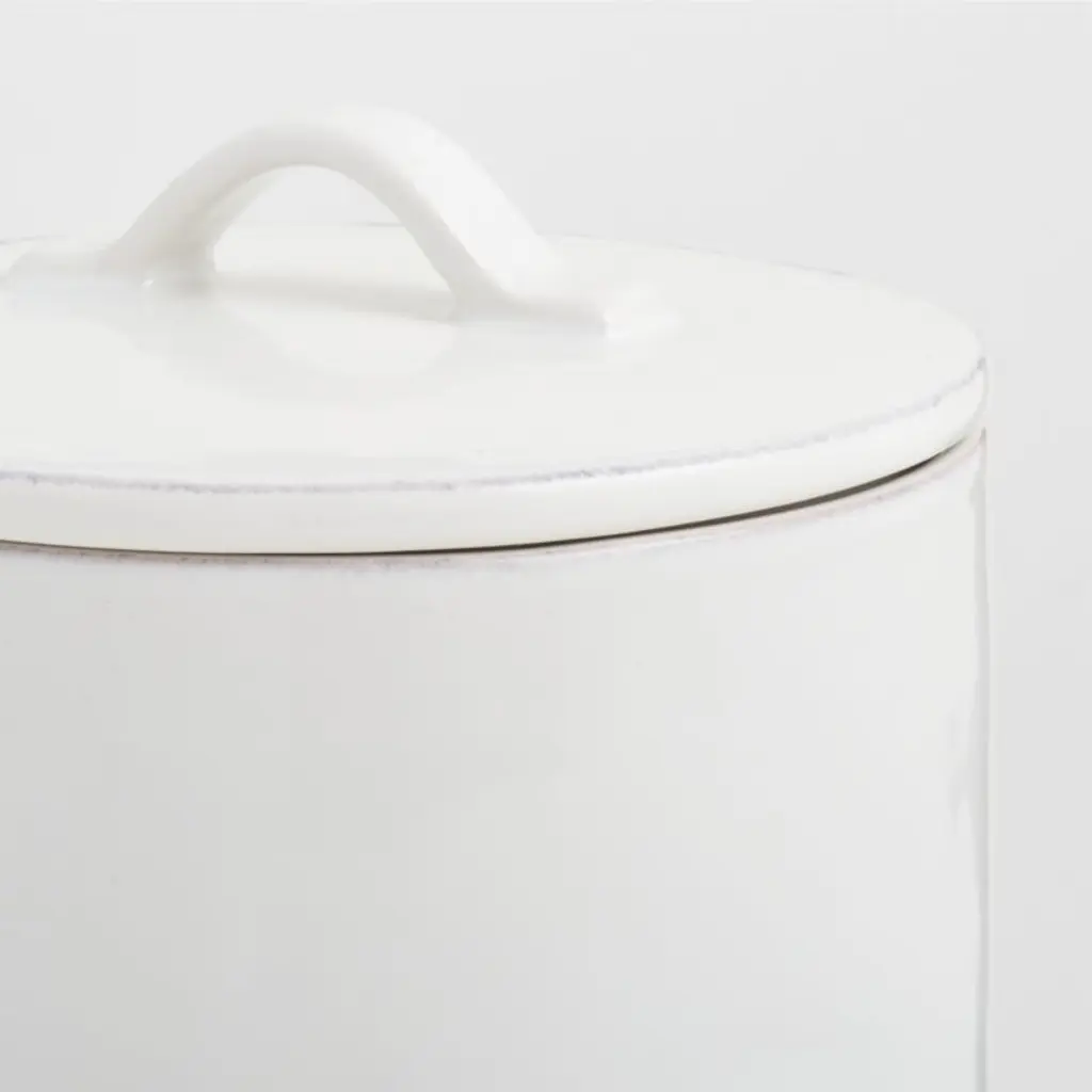 Made to complement our coveted Marin collection, this charming canister exhibits the same artisanal, organic lines. The display-worthy stoneware vessel glazed glossy white stores essential ingredients on the countertop or open shelving and cleans up easily in the dishwasher. A silicone gasket provides an airtight seal, while the pinched handle finishes the medium canister with a graceful touch. To complete the look, pair the medium canister with the matching small and large canisters and our coordinating Marin dinnerware and serving pieces.