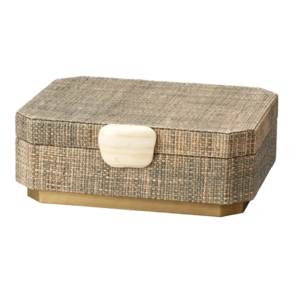 A celebration of minimalism and sophistication. Crafted with a wooden base, this pretty little trinket pot is entirely covered in a premium calfskin leather with a woven pattern. A matching leather tab handle completes the piece. The Mati box is perfect on vanities and shelves. Imprinted by Maker