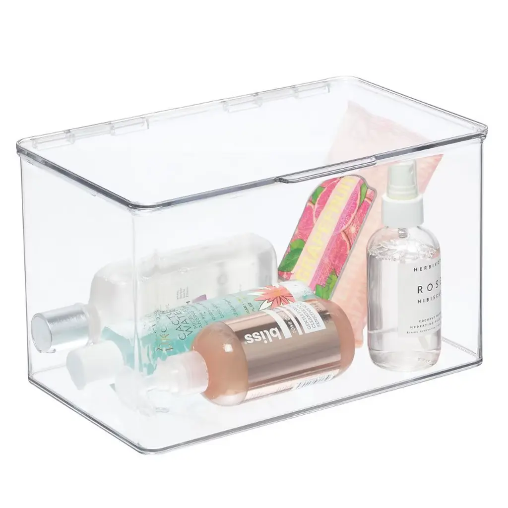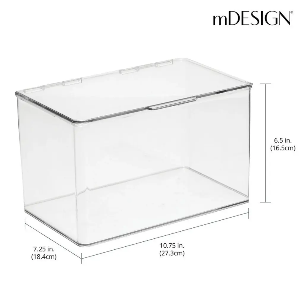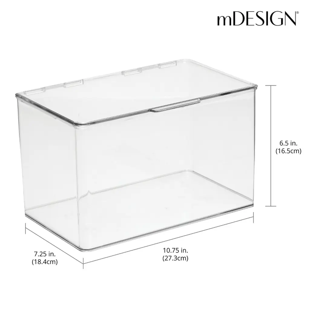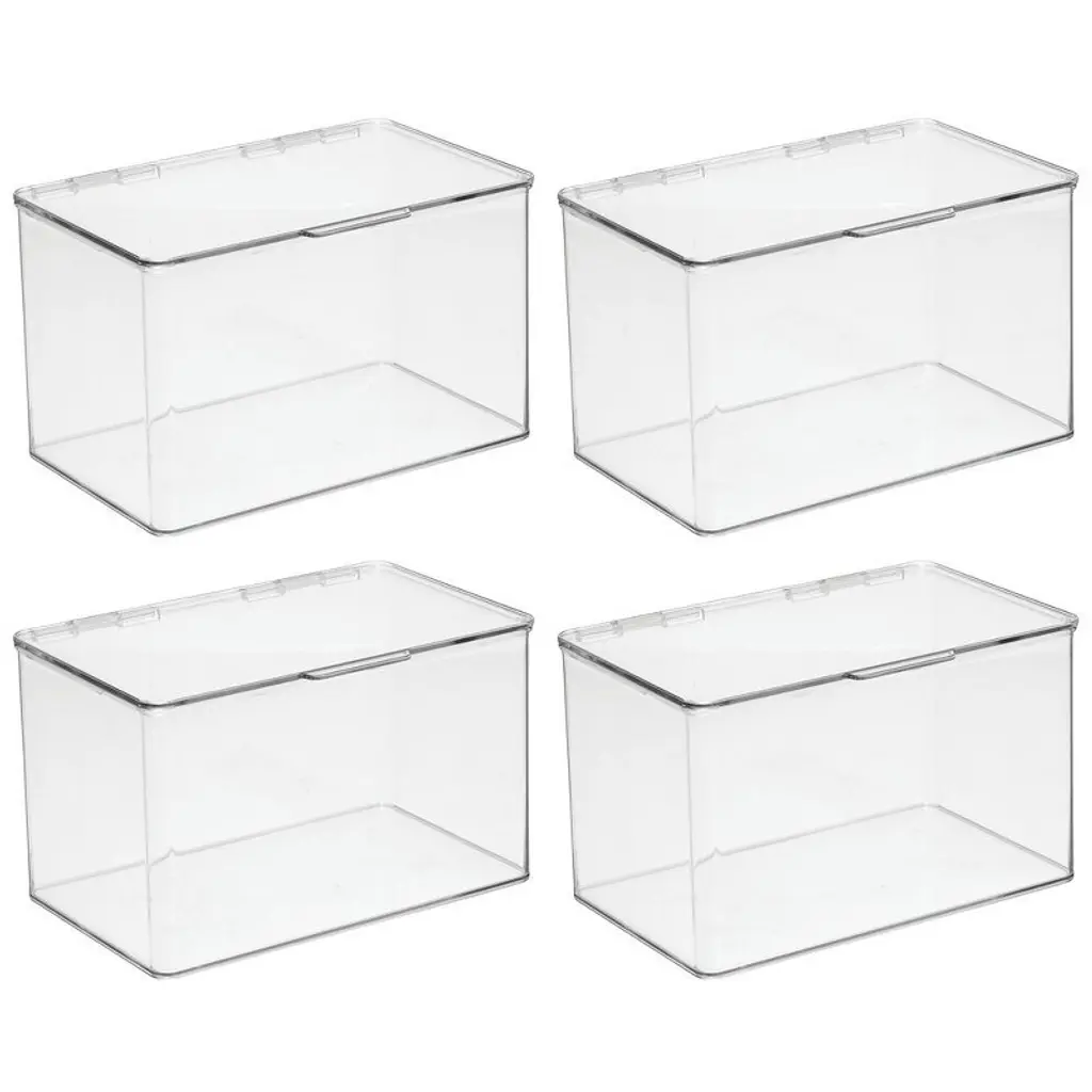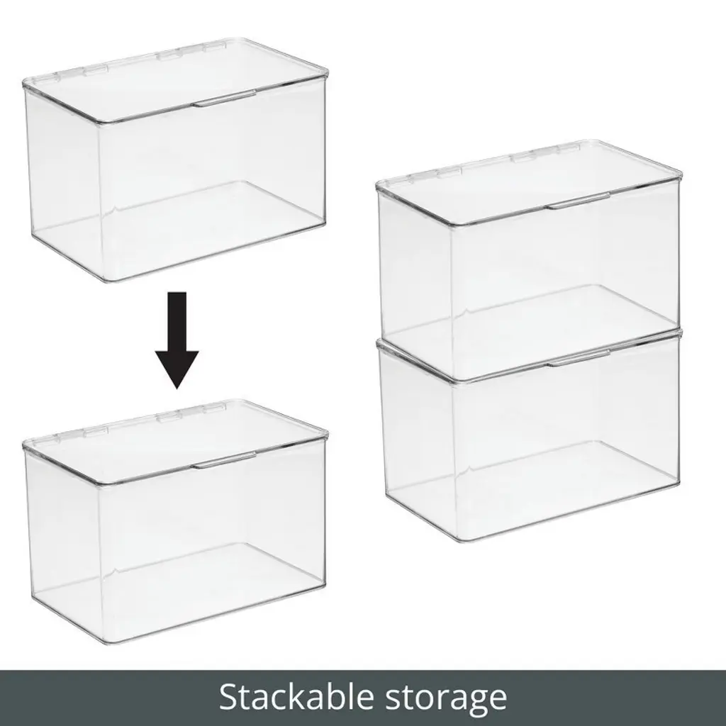 Mdesign Plastic Bath Stacking Storage Organizer Box, Hinged Lid, 4 Pack, Clear, Usa Made