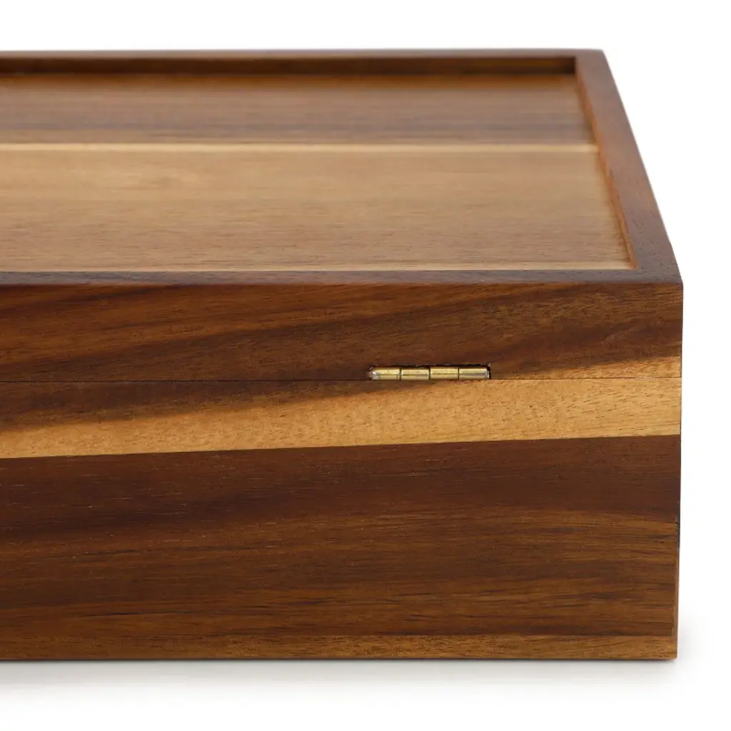 Megachef Acacia Wood 14.25 X 7.5 Inch 10 Compartment Tea Box