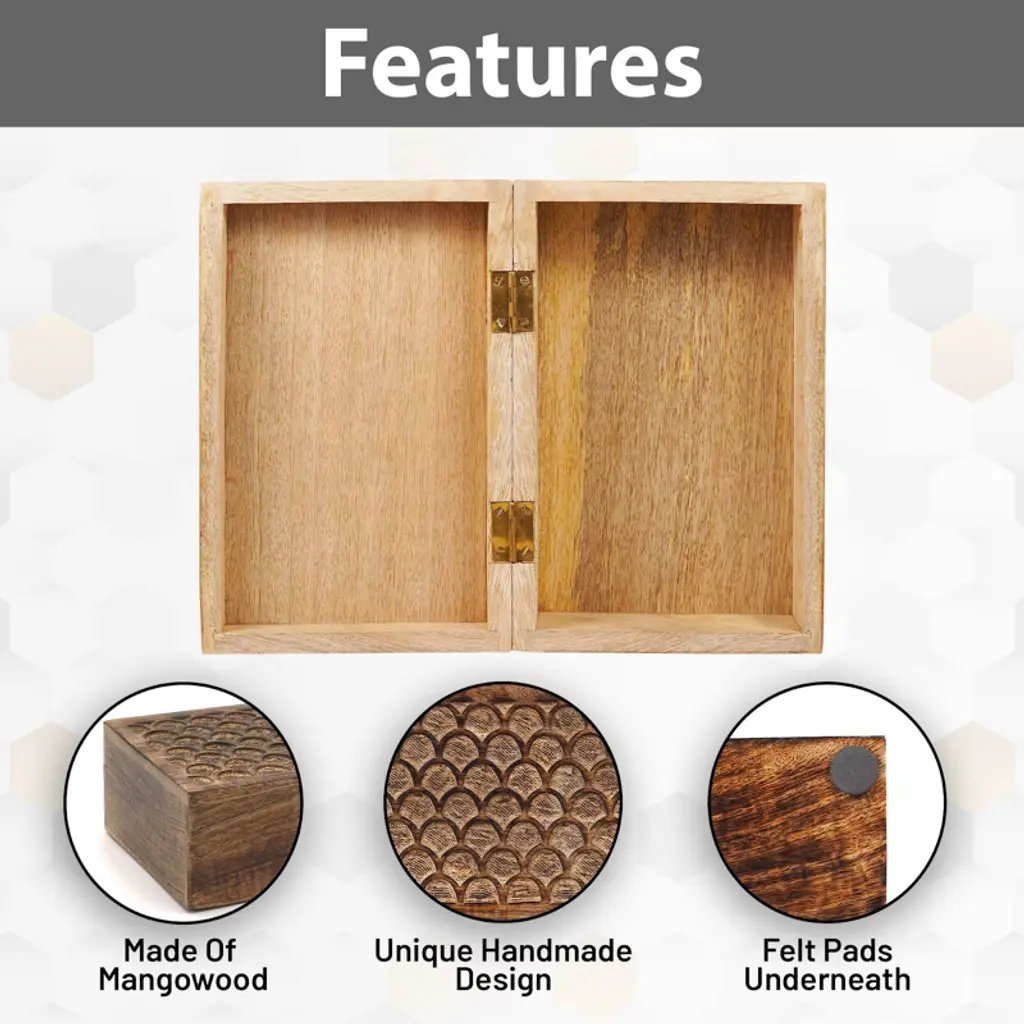Showcasing artisan detail, this handcrafted wooden box features trellis-inspired carvings with a distressed dove grey finish. Both decorative and practical, it provides versatile storage for jewelry, trinkets, or stationery, while larger sizes hold keepsakes or accessories. Every handmade piece has subtle variations, giving it authentic charm. Blending utility and style, it works beautifully in modern or traditional spaces. A thoughtful gift choice, it is perfect for birthdays, weddings, housewarmings, or holiday celebrations. Available sizes: Medium – 7.5 x 4.5 x 3" Large – 9 x 6 x 3.5" Extra Large – 10.5 x 7.5 x 4"