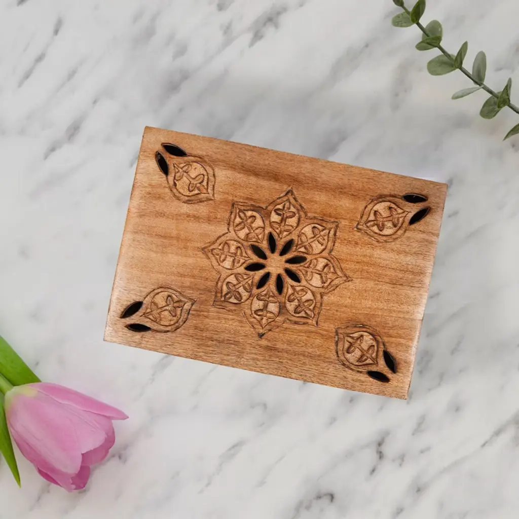Handmade by artisans, this decorative box features delicate trellis carvings with a distressed white finish that enhances its timeless appeal. Perfect for storing jewelry, trinkets, or keepsakes, it doubles as a stylish home accent. Each piece is unique, with natural variations that make it special. Blending practicality with beauty, it suits traditional, coastal, or modern décor. A versatile and thoughtful gift idea, it’s perfect for weddings, birthdays, or housewarming celebrations, adding artisan value to any space. Available sizes: Medium – 7.5 x 4.5 x 3" Large – 9 x 6 x 3.5" Extra Large – 10.5 x 7.5 x 4"