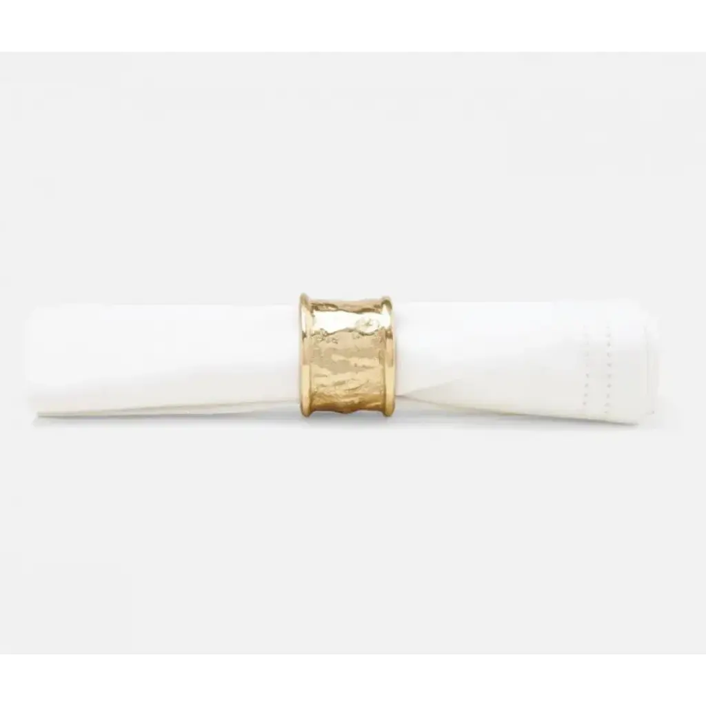 Finish: Gold Material: Brass Our Melvin napkin rings—wide rings of gorgeously textured, highly polished metal—have a great simplicity. Sets of four are available in antiqued pewter or shiny gold. Blue Pheasant's products are handmade with care by artisans using natural materials. They are not mass produced, so variation between products should be expected, and this is why we love them! It is these irregularities that makes Blue Pheasant what it is—a special brand whose collections are distinctly handmade, full of charm and originality you’ll never find in machine-made products.
