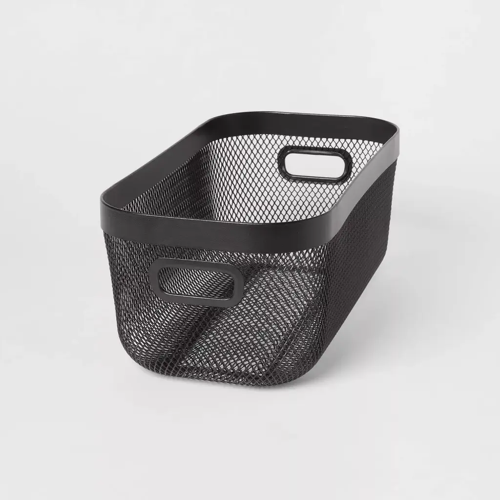 Metal Mesh Media Bin Black - Brightroom™: Steel Wire Basket With Handles, Rectangular Storage, 12.06" X 6.06" X 4.78"