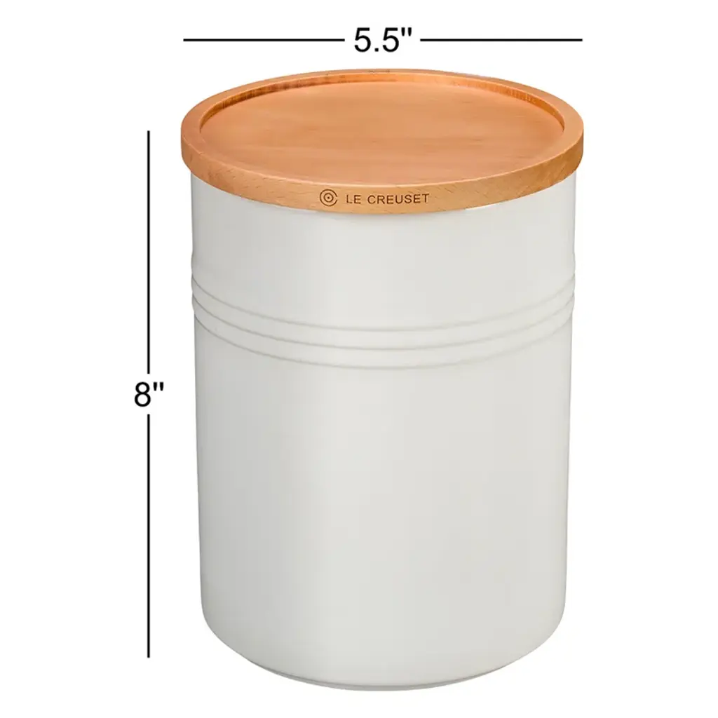 Keep dry baking ingredients at the ready on your kitchen counters or stow leftovers with this must-have canister, featuring an enameled stoneware design.