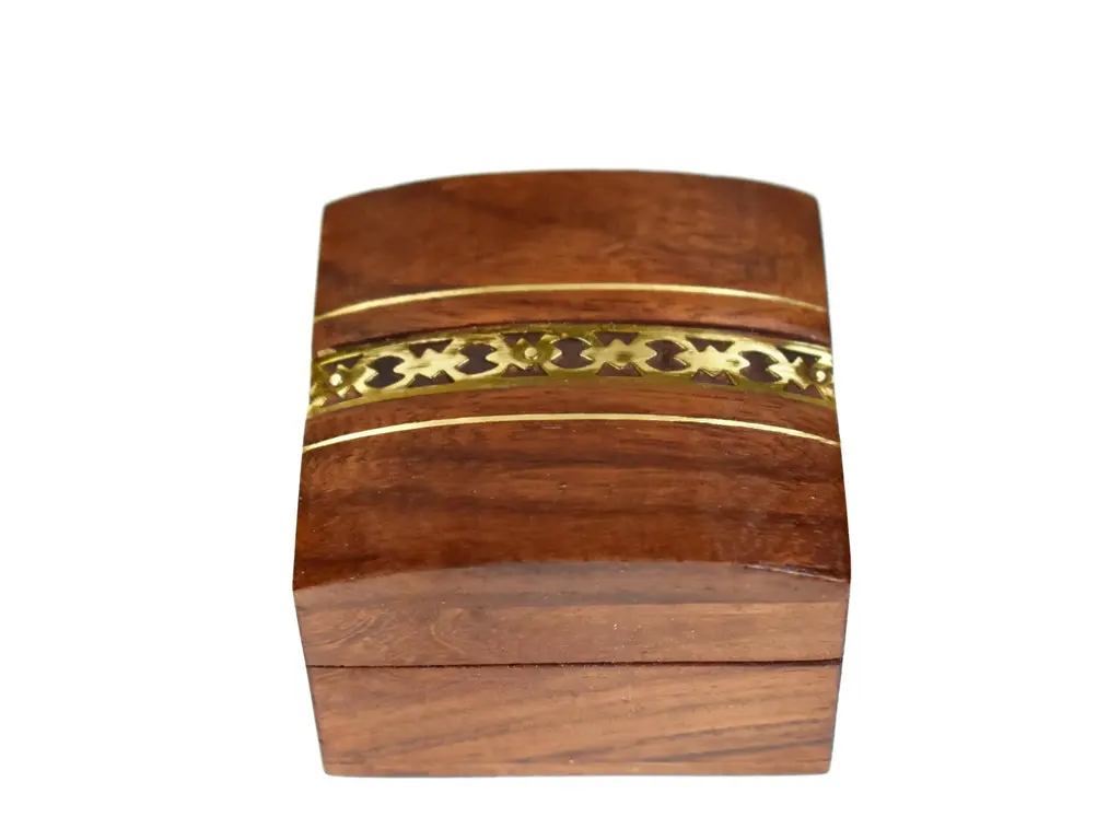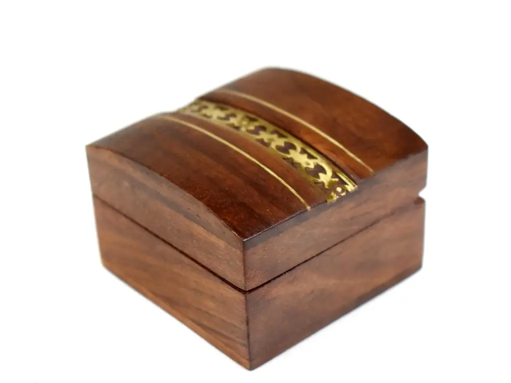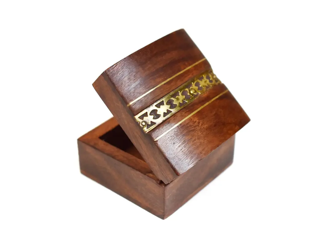Item Details: -unique hand made brass inlaid jewelry box with beautiful details is a great box to store and display your rings, for proposals, Wedding ring holders or general gift giving. -in excellent vintage condition -Dimensions (approximately): 2.25" L x 2.25" W x 1.5" H
