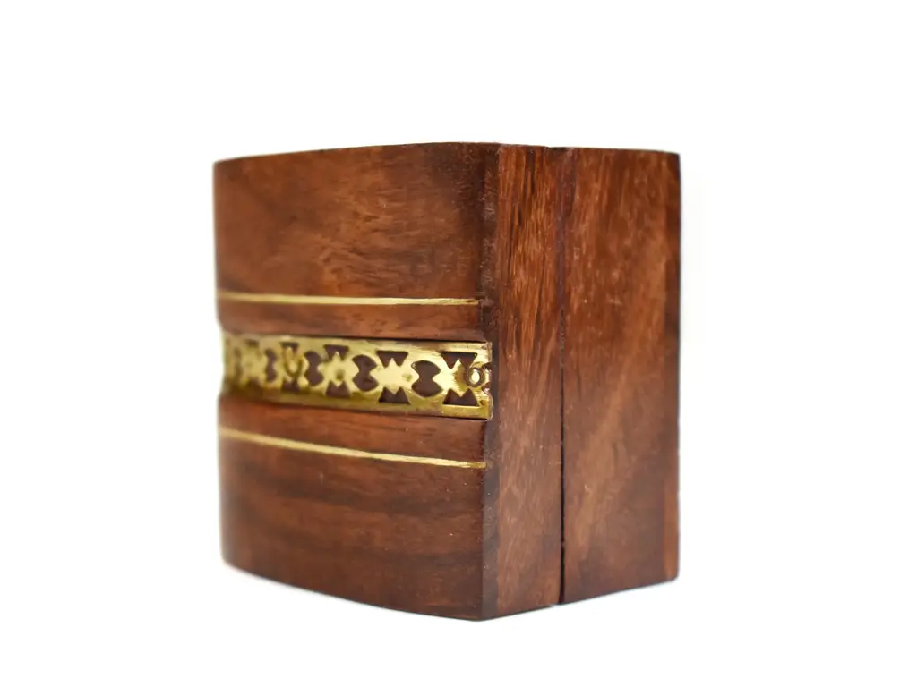 Mid 20th Century Vintage Handmade Brass Inlaid Wooden Box