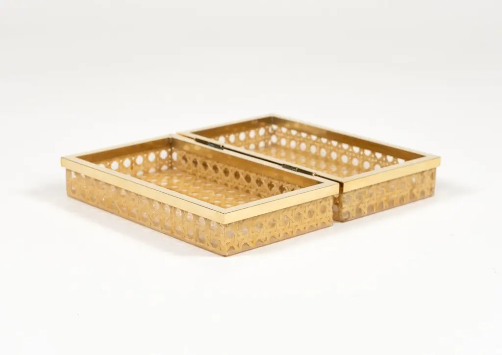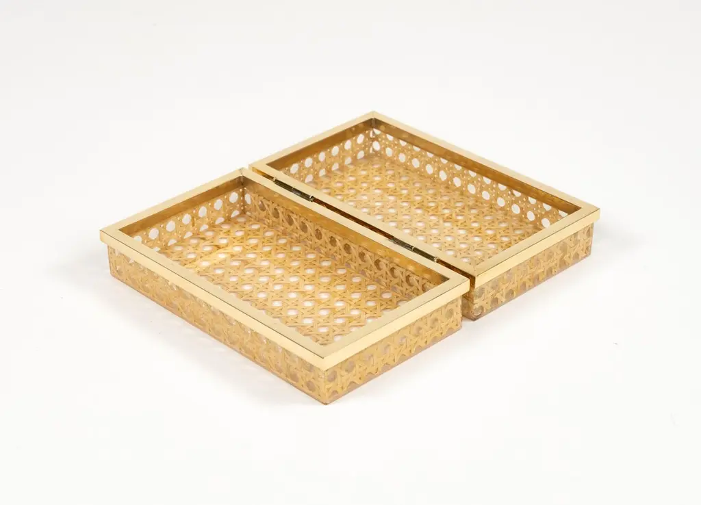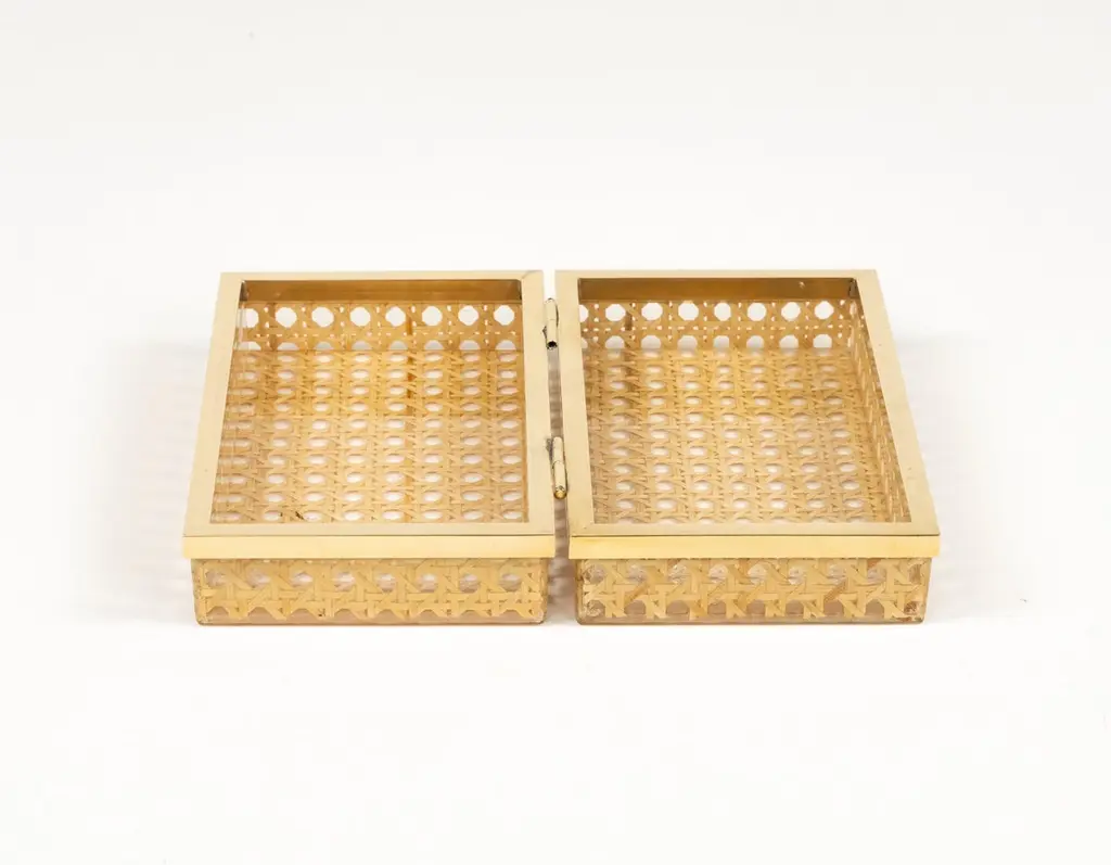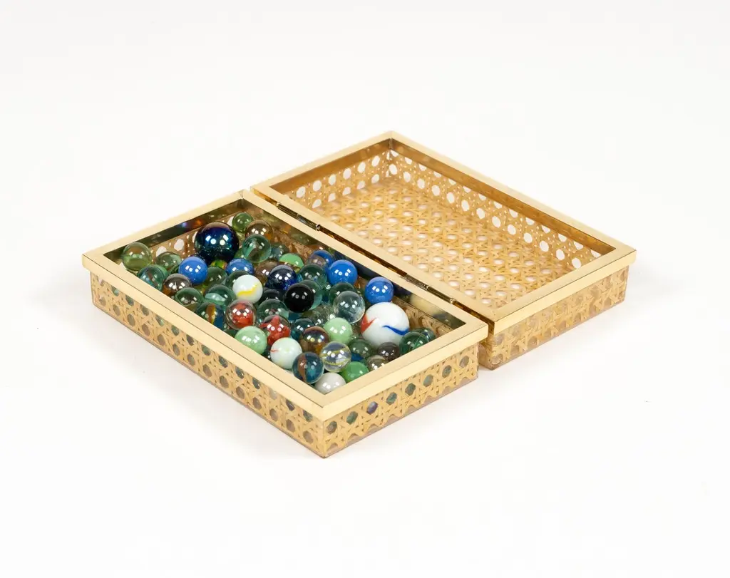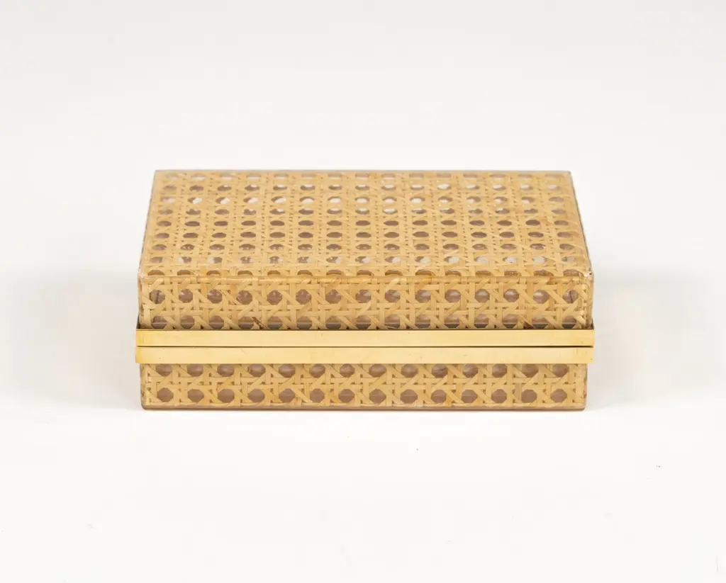 Midcentury Box In Lucite, Rattan And Brass Christian Dior Style, Italy 1970s