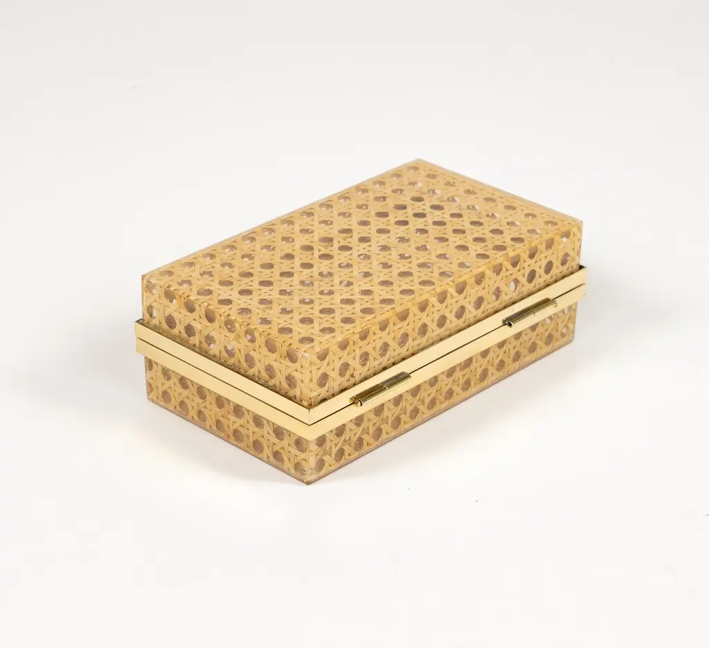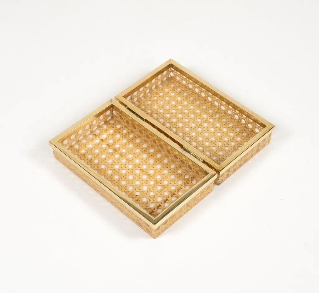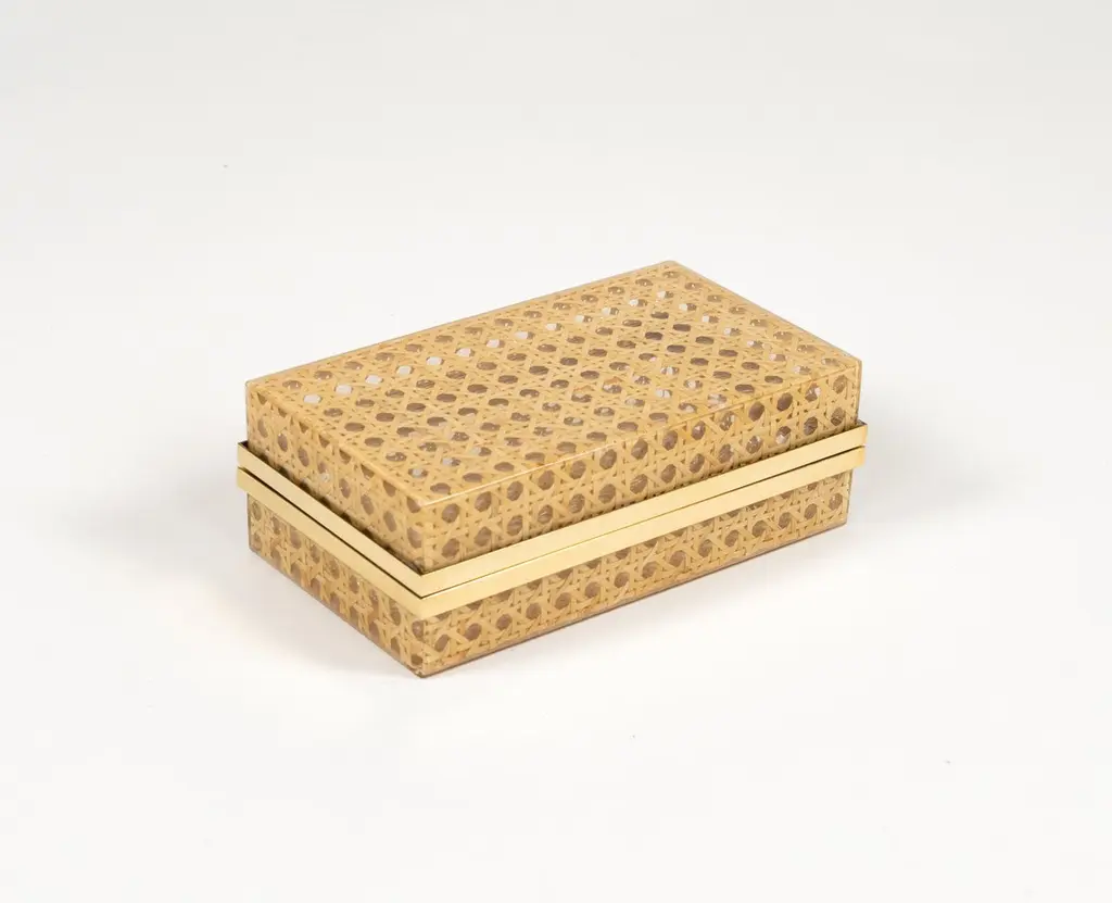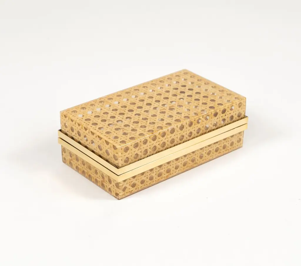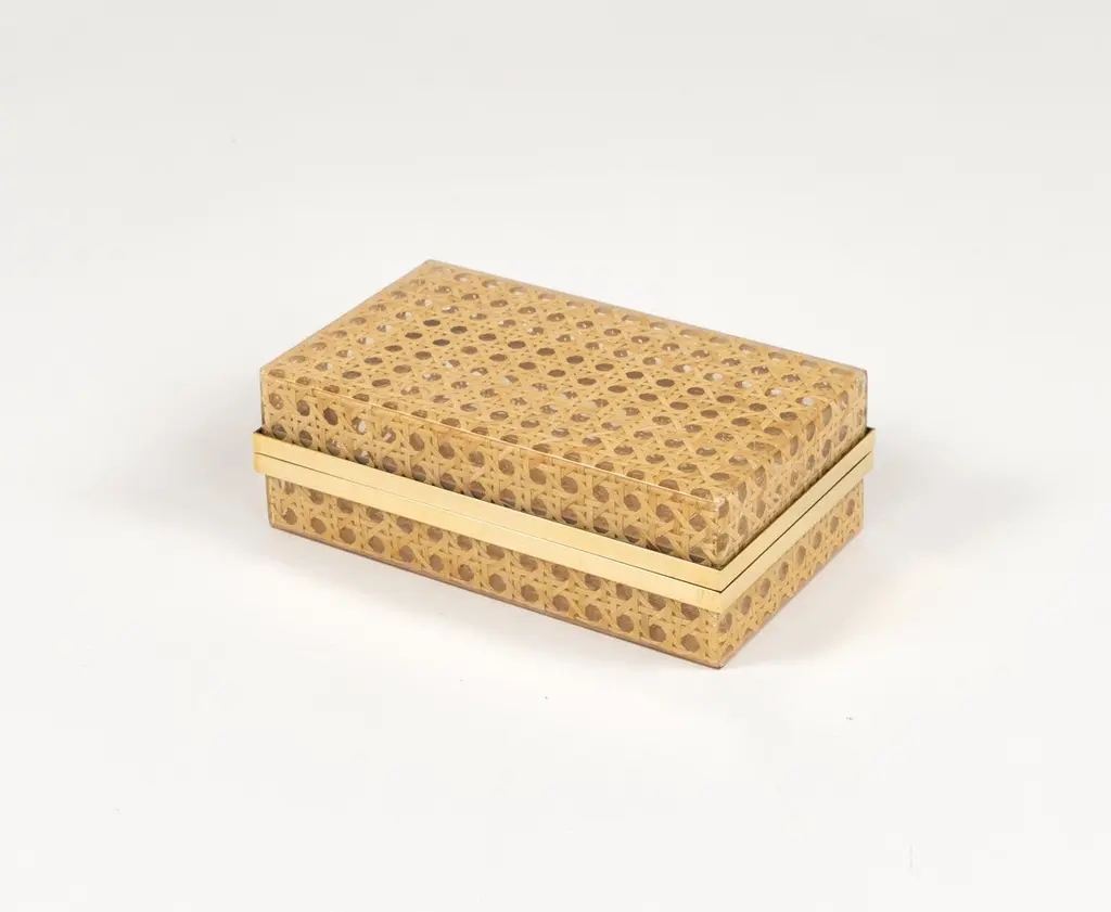 Midcentury Box In Lucite, Rattan And Brass Christian Dior Style, Italy 1970s