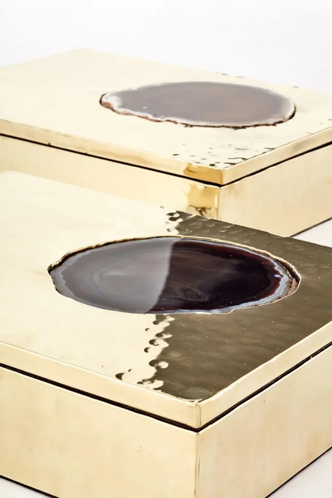 Misiones agate collection is inspired in our Iguazu falls were we get this beautiful stone.In our boxes and photoframes the star is a big natural piece of this beautiful, unique one of a kind slice semi precious stone.Our pieces are made by hand. One of a kind.All natural stones may vary in color and shape.