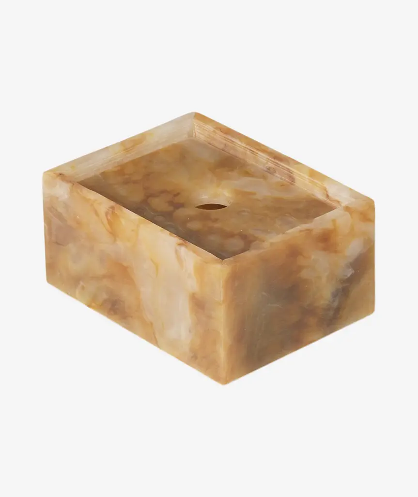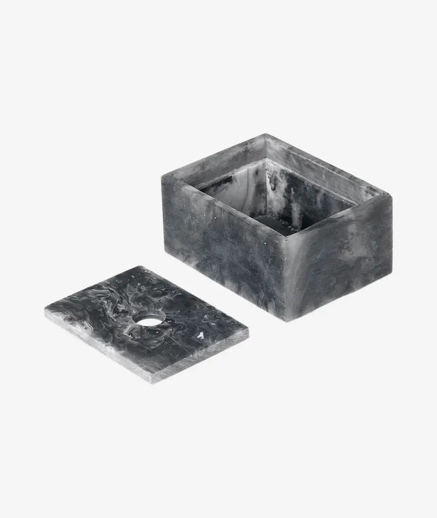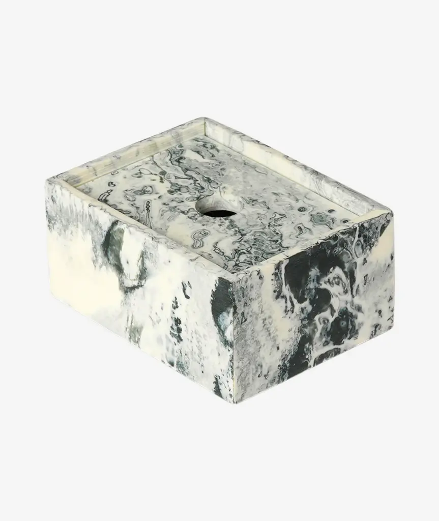 The Mist Series offers a sophisticated blend of playful geometry and functional design. Each piece in this whimsical series allows you to create your unique combination with interlocking, stackable forms. Crafted from a resin blend, the Mist Box features fluid, swirling shapes and ethereal tones, making each box truly one-of-a-kind. Perfect for bathroom storage, stationery, or as a treasure box, the lid effortlessly slots atop the base with a small cut-out for easy access. Available in various sizes and sold separately, the Mist Box meets a range of home storage needs with elegance and style.