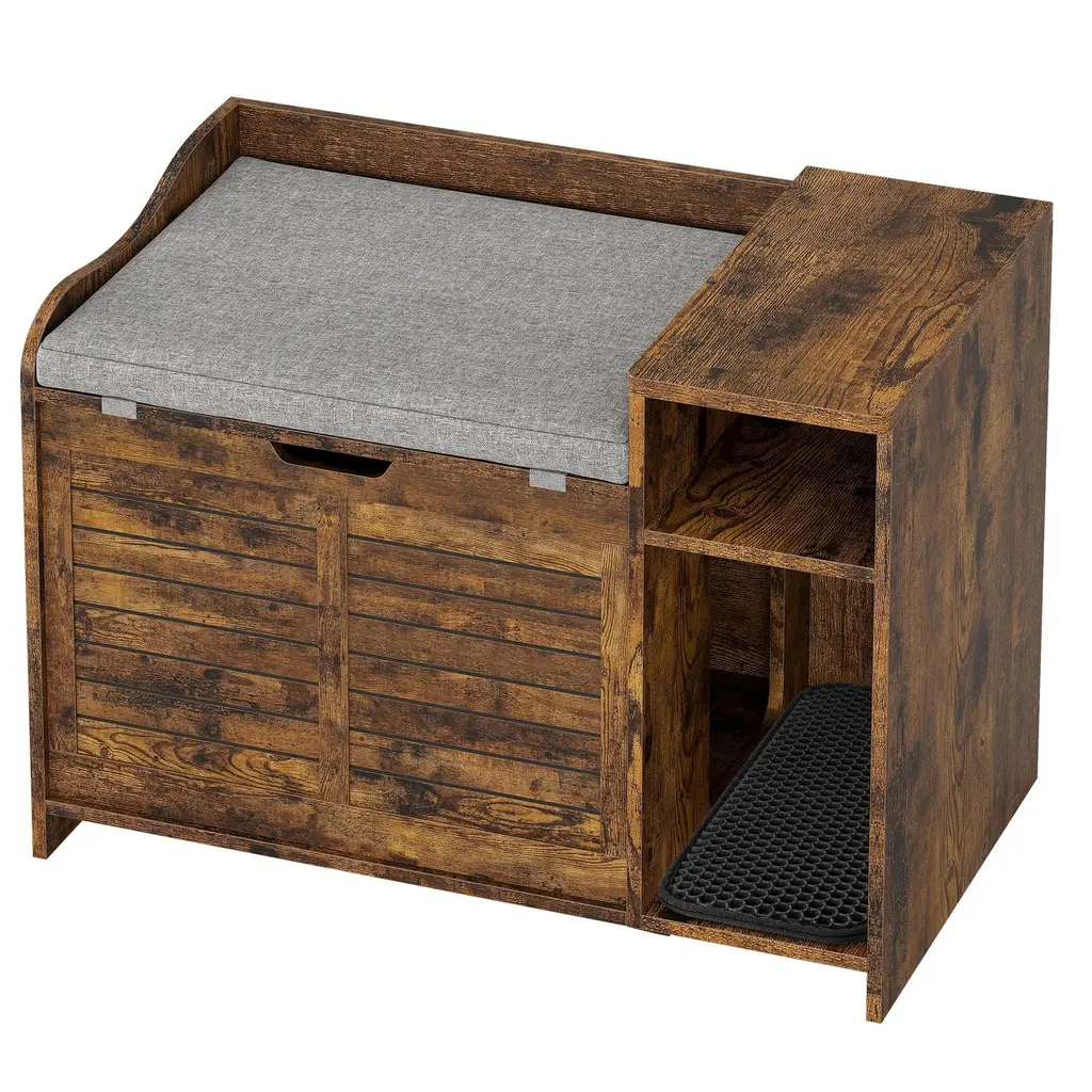 Modern Cat Litter Box Enclosure With Top Opening - Rustic Brown