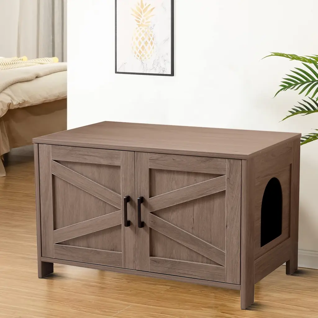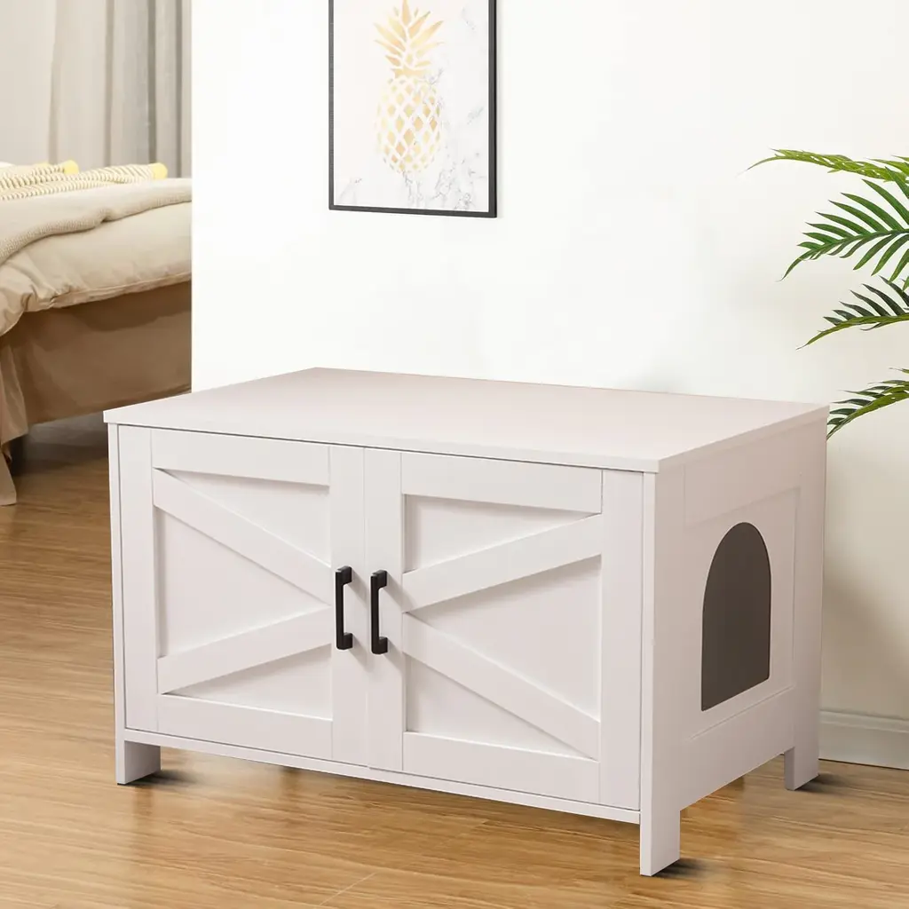 Description:Keep your cats litter box in any room without smells or unattractive sights with this White/ Dark Brown Modern Large Ventilated Private Divider Cat Litter Box. Comes with hollow window holes to allow for proper ventilation creating a private yet breathable environment for the pur-fect kitty. Large entry hole allow your kitty to enter/exit with ease. Comes with a wide top design to allow for a stylish multi-functional cat house and/or side table nightstand.