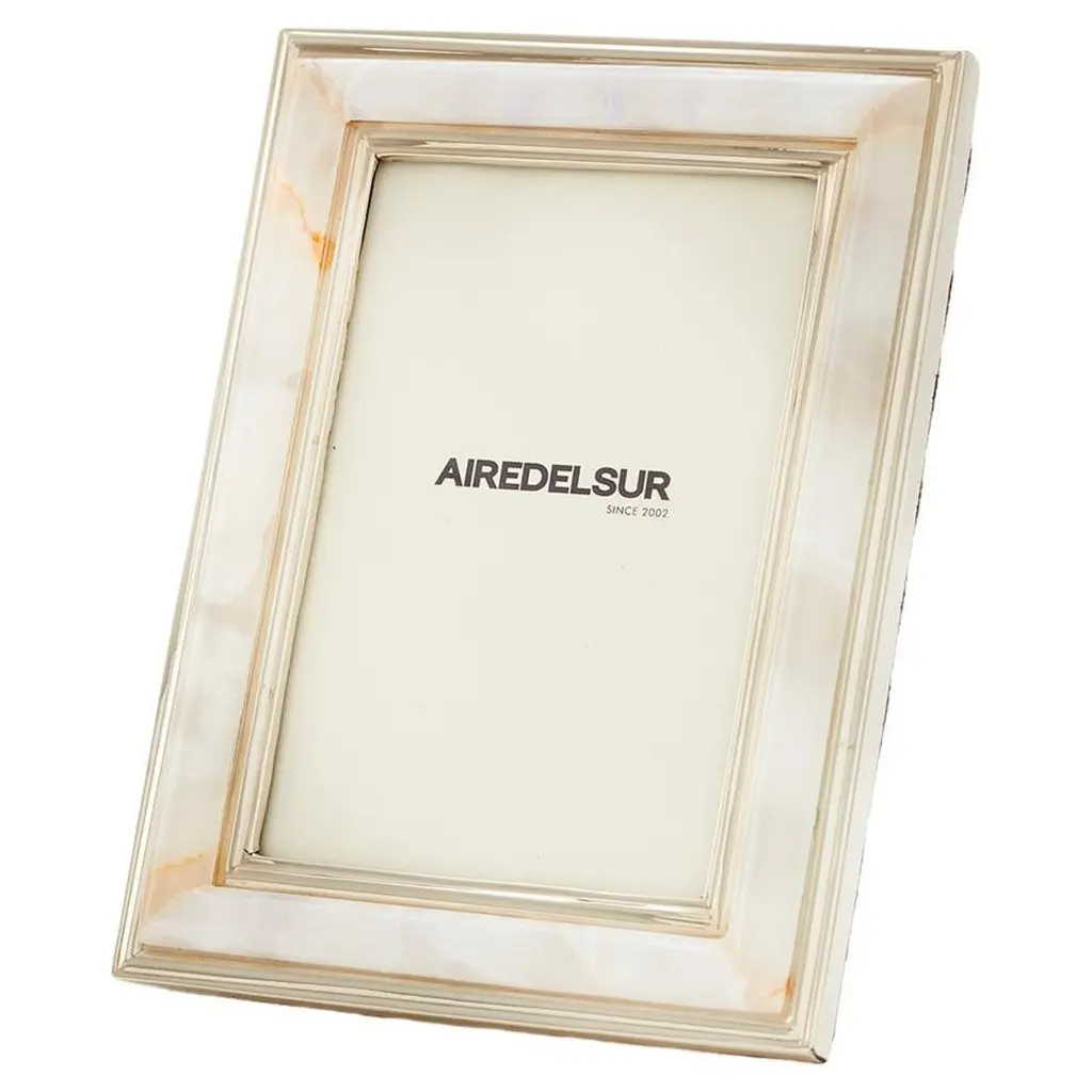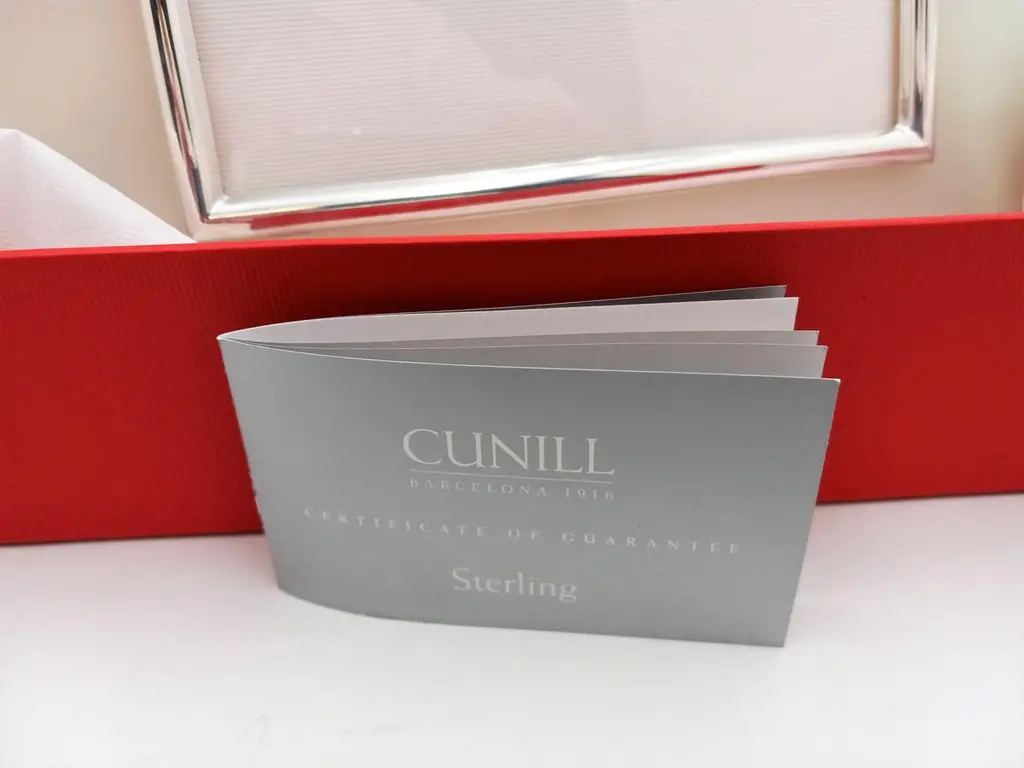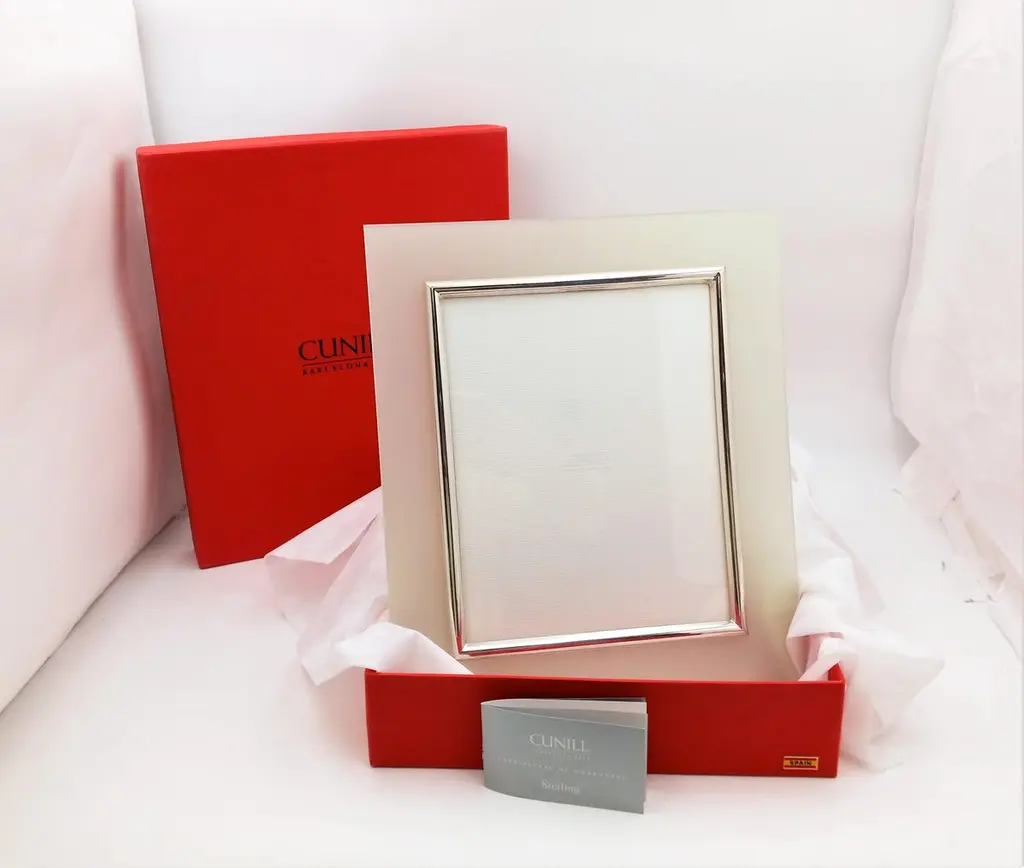 Modern silver and green (possibly) Bakelite 8 x 10 frame. Actual height is 13 3/4"; width is 11 1/2". This striking Cunill frame is brand new and comes in the original box and wrapping, with slipcover for box.Since 1916, the craftsmen of Cunill Barcelona have combined artisan traditions with innovation to provide the marketplace with heirloom-quality handmade luxury items.