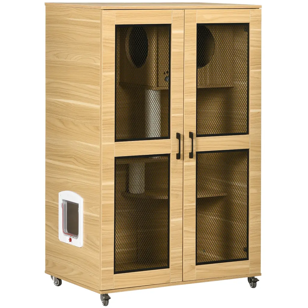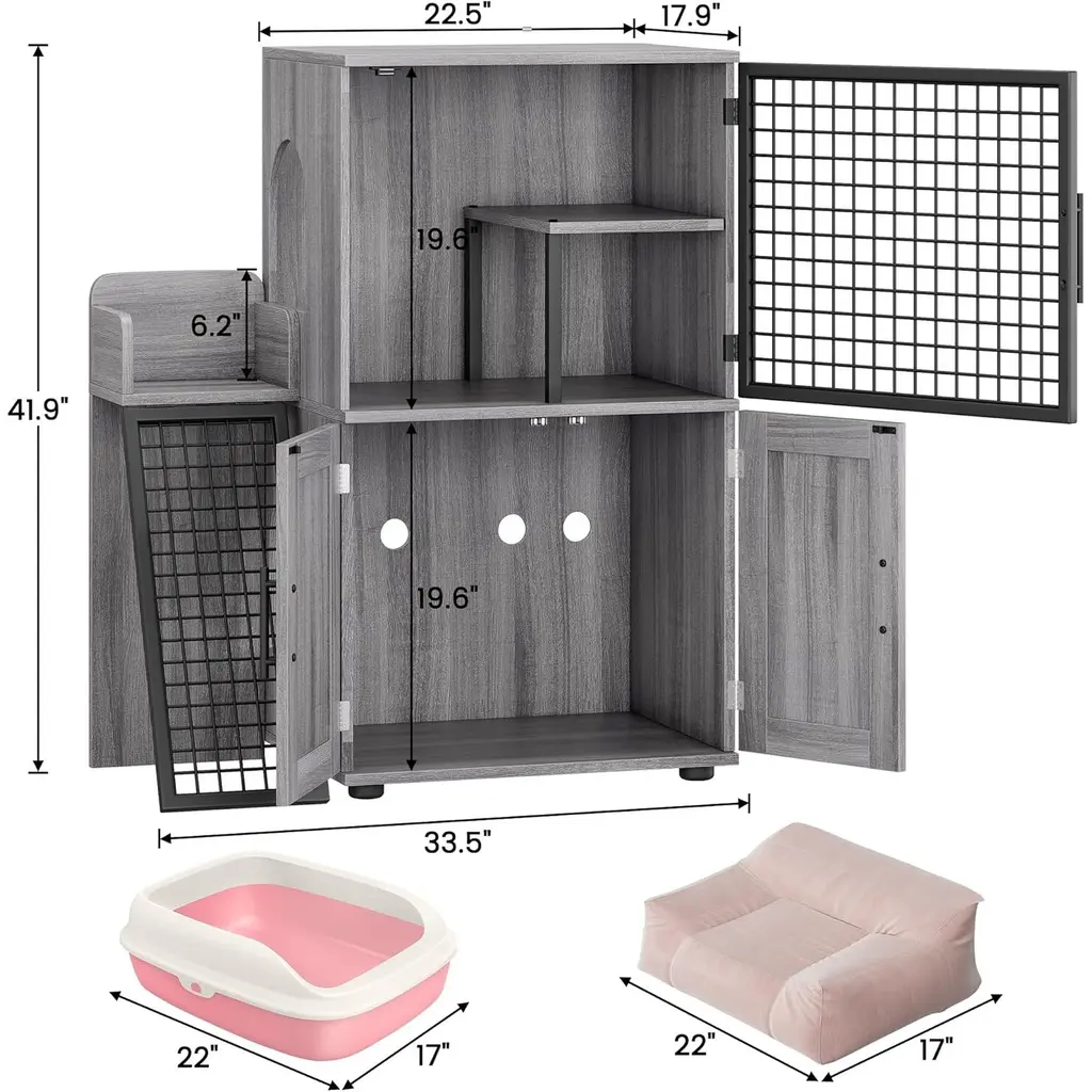 Ample Storage Space:This corner cabinet features adjustable concealed shelves on both the upper and lower levels, allowing for customizable height configurations to meet your unique storage needs and maximize capacity.Farmhouse Corner Cabinet Design:With its rustic barn door aesthetic, this cabinet adds a delightful vintage charm to your living room, bedroom, kitchen, or bathroom, infusing any space with a touch of rustic elegance.Secure Stability:Designed with a 90° right-angle structure, this corner pantry cabinet fits perfectly into the corners of two walls. Its sturdy base and anti-tip mechanism securely attach to the wall, enhancing safety and stability.Waterproof Material:Crafted with a waterproof finish and rustproof coating, these bathroom corner cabinets are built to withstand various indoor environments. They're designed for easy cleaning and maintenance, making them ideal for bathrooms and kitchens.Easy Assembly & Exceptional Customer Service:Our wooden corner cabinet comes with detailed instructions and numbered components for hassle-free assembly. Should you have any questions or concerns, our dedicated customer service team is ready to assist you.Introducing the Modern Villa Cat Litter Box Enclosure, a stylish and multifunctional addition to your home that seamlessly blends convenience with aesthetic appeal. This innovative design features a private litter box compartment and a cozy resting area, making it a perfect retreat for your feline friend. With a climbing ladder and spacious playground, your cat can enjoy playtime and relaxation in a safe and secure environment. Constructed from sturdy MDF and high-quality iron, this cat house ensures stability and longevity while offering ventilation for your pet's comfort. Ideal for any room, it cleverly conceals litter box odors and clutter, enhancing your home's decor. Easy to assemble with clear instructions, the Villa Cat Litter Box Enclosure is the perfect solution for modern pet owners seeking style and functionality.