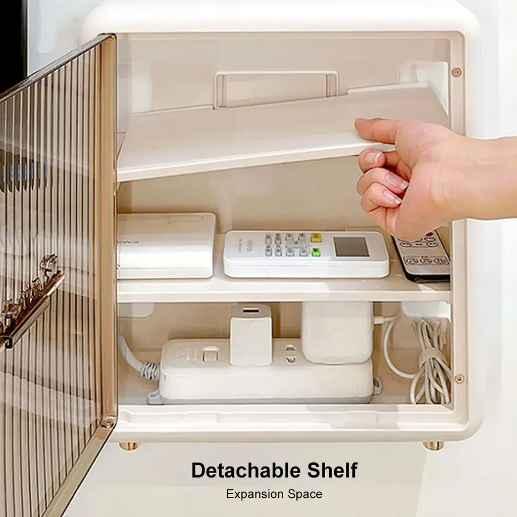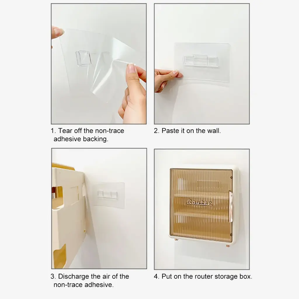 【Router Storage Box Material】 Made of high-quality PET plastic material, this wall storage shelf is very durable, and waterproof. Load Bearing: 2.5 kg. Strong /traceless hooks are provided, DIY install and excellent bearing capacity, stable and safe, and not easy to fall off. 【Equipped with a Cable Hole Design】Cable hiding box for hiding messy cables and wires, helping keep all neatly organized and within reach. round corners offer protection for children from bruising and getting hurt ensuring the safety of your family. 【Easy to Dissipate Heat / Does Not Block the Signal】 WiFi router storage box There are multiple holes designed at the bottom and top, which help to accelerate heat dissipation and receive signal. Make the shelf looks more elegant and beautiful. 【Multi Functional Router Storage Shelf】Removable installation of upper and lower layers (can be installed according to your needs), for conveniently organizing your router and other items in layers. Suitable for home or office to organize your set-top box, power strip, cable, router, remotes, etc.