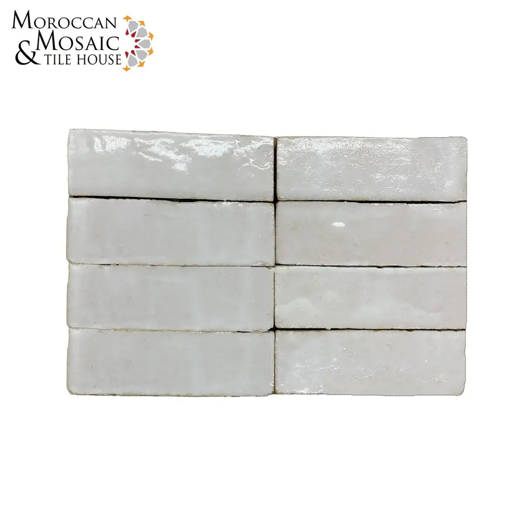 Moroccan Handmade 2X6 Solid Color Zellige Tile Off-White - Box Of 48 Tiles