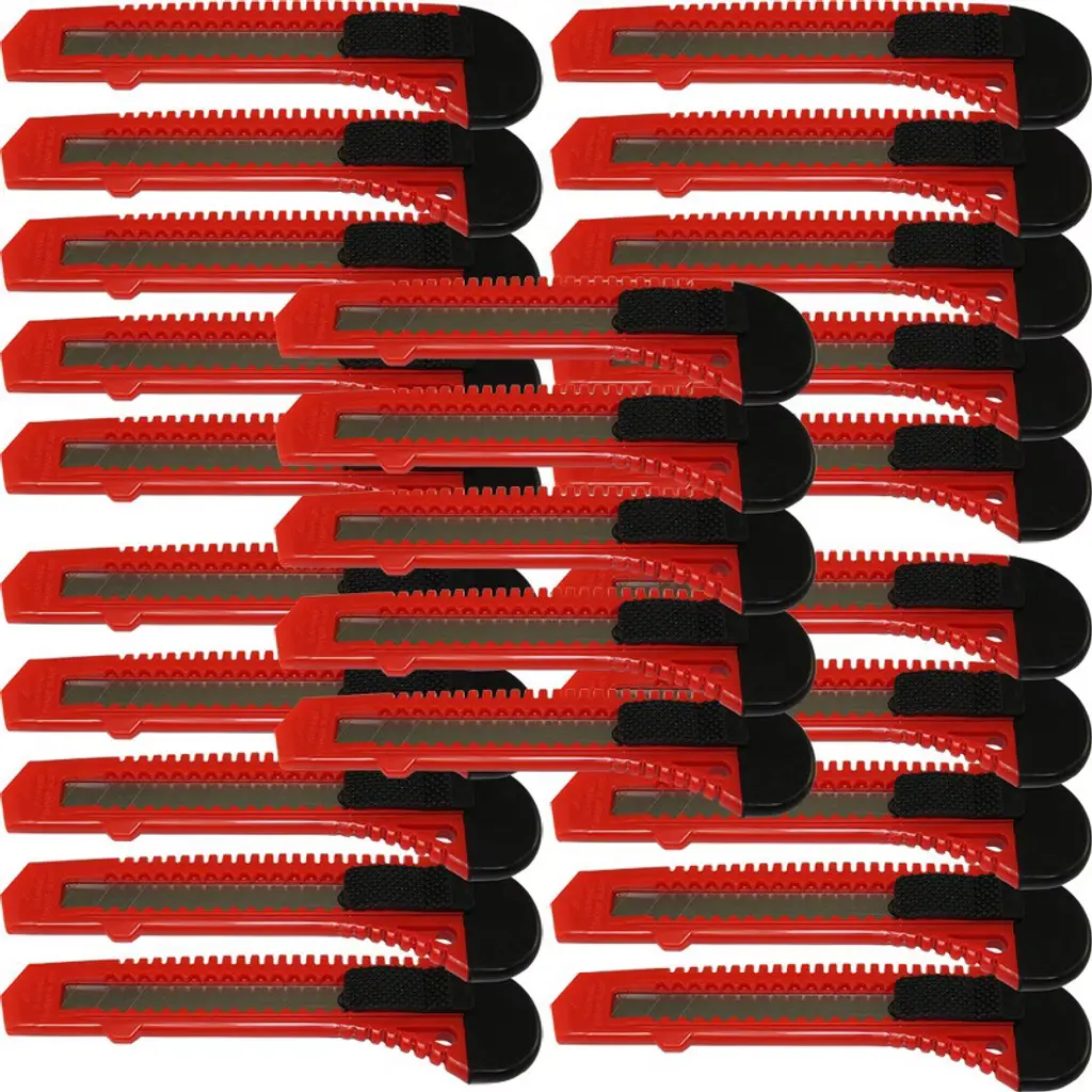 USE FOR: Construction, woodworking, crafts, farming, fishing, camping, and hunting. Ideal for cutting cardboard, plastic leather carpet, rope, etc. PACKAGE CONTAINS: Set of 5 Adjustable thumb blade lock. Adjustable blades snap-off, ensuring sharp cutting edges. BEST ECONOMY BOX CUTTER UTILITY KNIFE: Heavy Duty Utility Knife comes with a Snap off, Built-In Snapper End Cap for Easy Blade Renewal. Long Blade is Scored to Snap Off at Intervals to Reset the Blade to the Next Sharp Section 15 points for long lifetime and sharpness Easy to carry around in Pocket, Belt Pouch, Tool Kit, Shirt Pocket. light weight. IDEAL FOR MANY CUTS - Use for precise applications like paper, tape, plastic, cardboard, balsa, bass wood, photos, coupons, cardstock, mat board, foam board, delicate fabrics, crafts, amazon, ups or post office packages. EXTENDED USE AND SAFETY LOCK FEATURES- Prevent blade slipping with the safety lock tab. Always keep your blade fresh and sharp by snapping off the blade for a new sharp cutting tip.