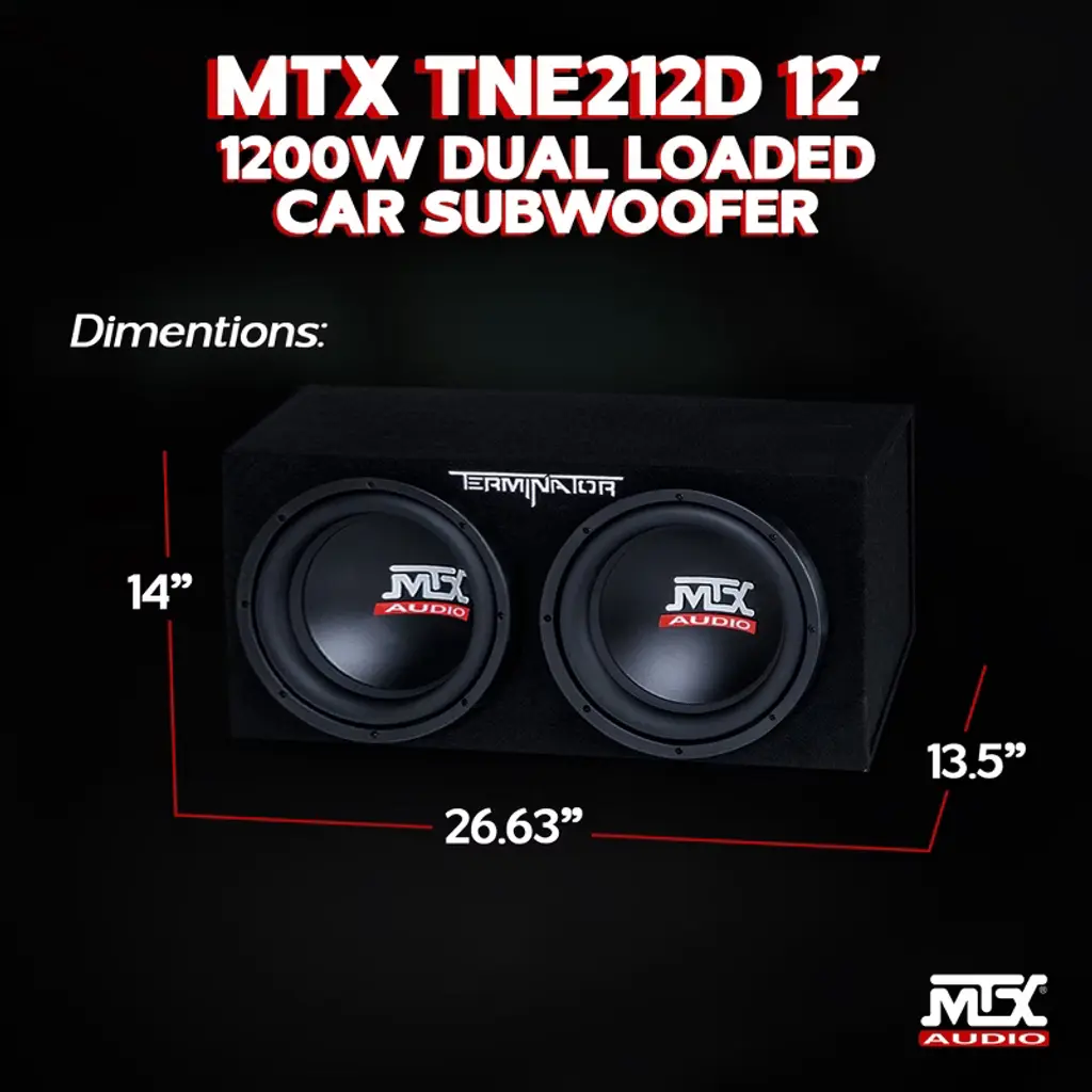 Mtx Tne212d Terminator 12 Inch 1200 Watt 2 Ohm Single Voice Coil Car Audio Dual Loaded Subwoofer Speaker Box Enclosure For Vehicle Sound System