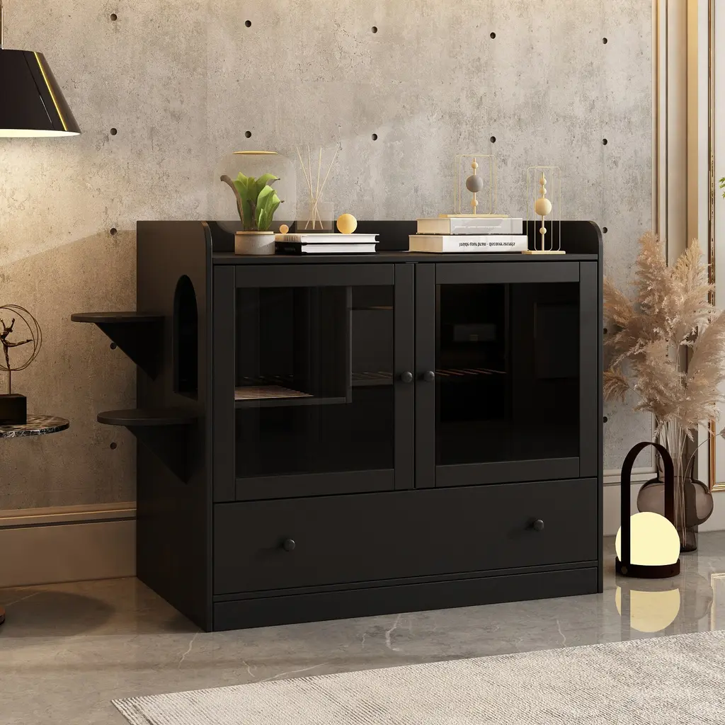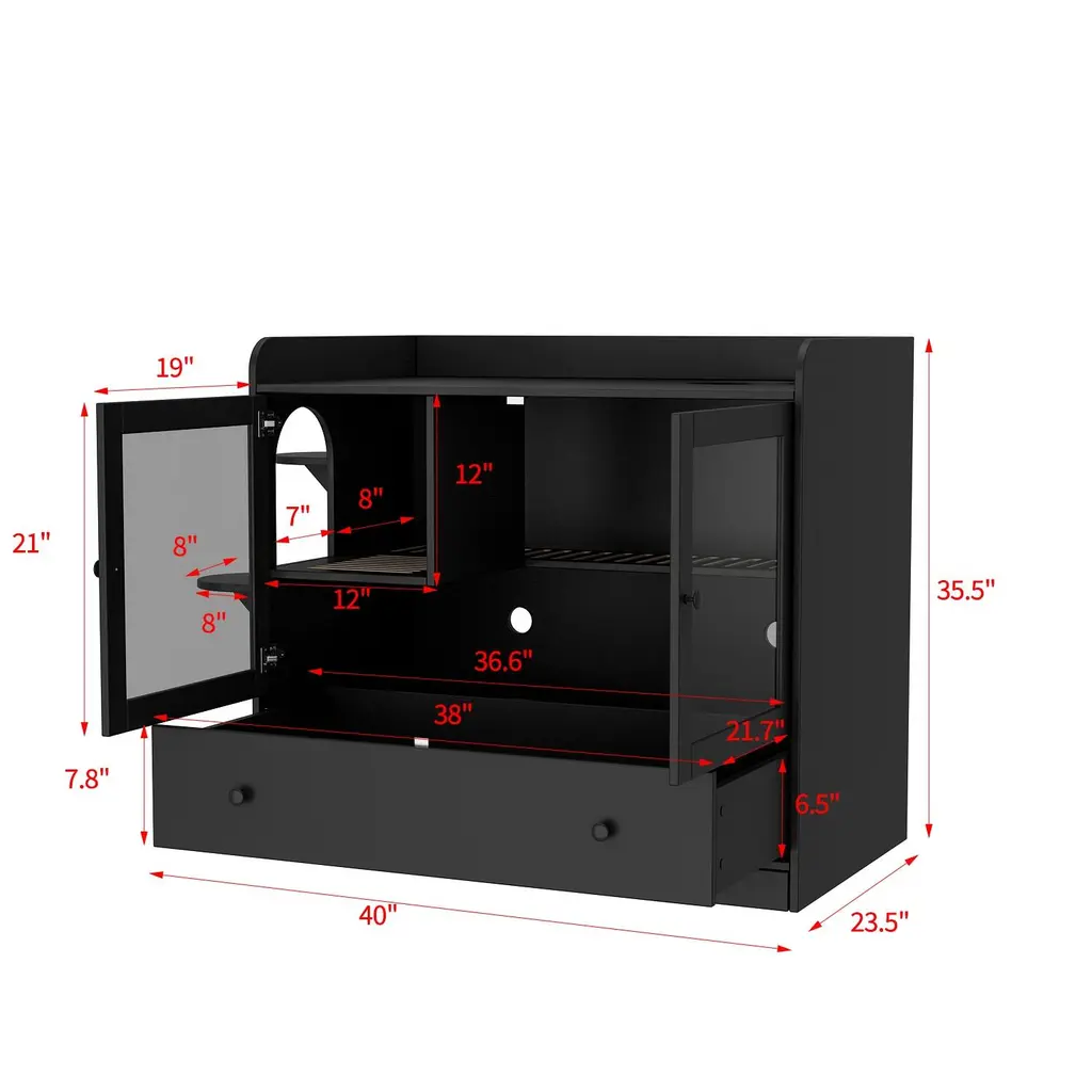 Multifunctional Pet Litter Box Cabinet Stylish Hideaway For Your Cat - Black