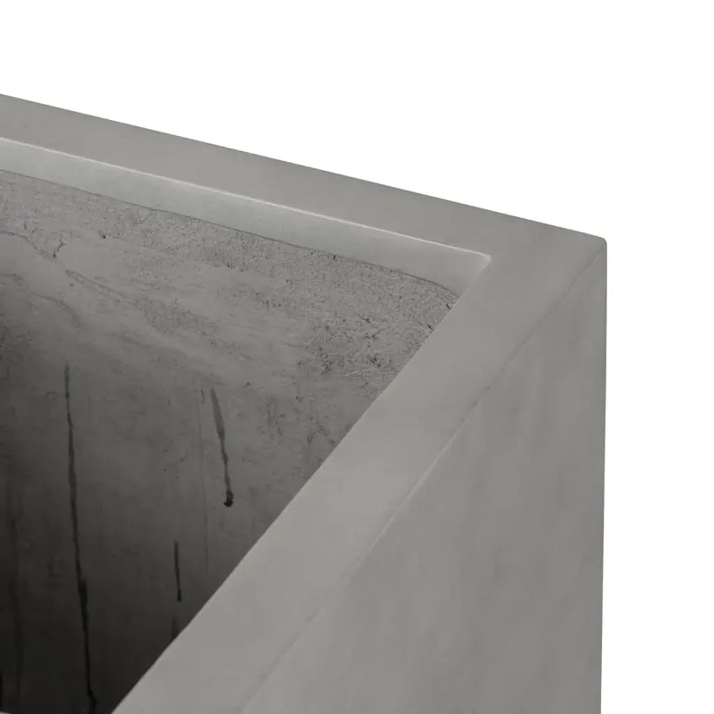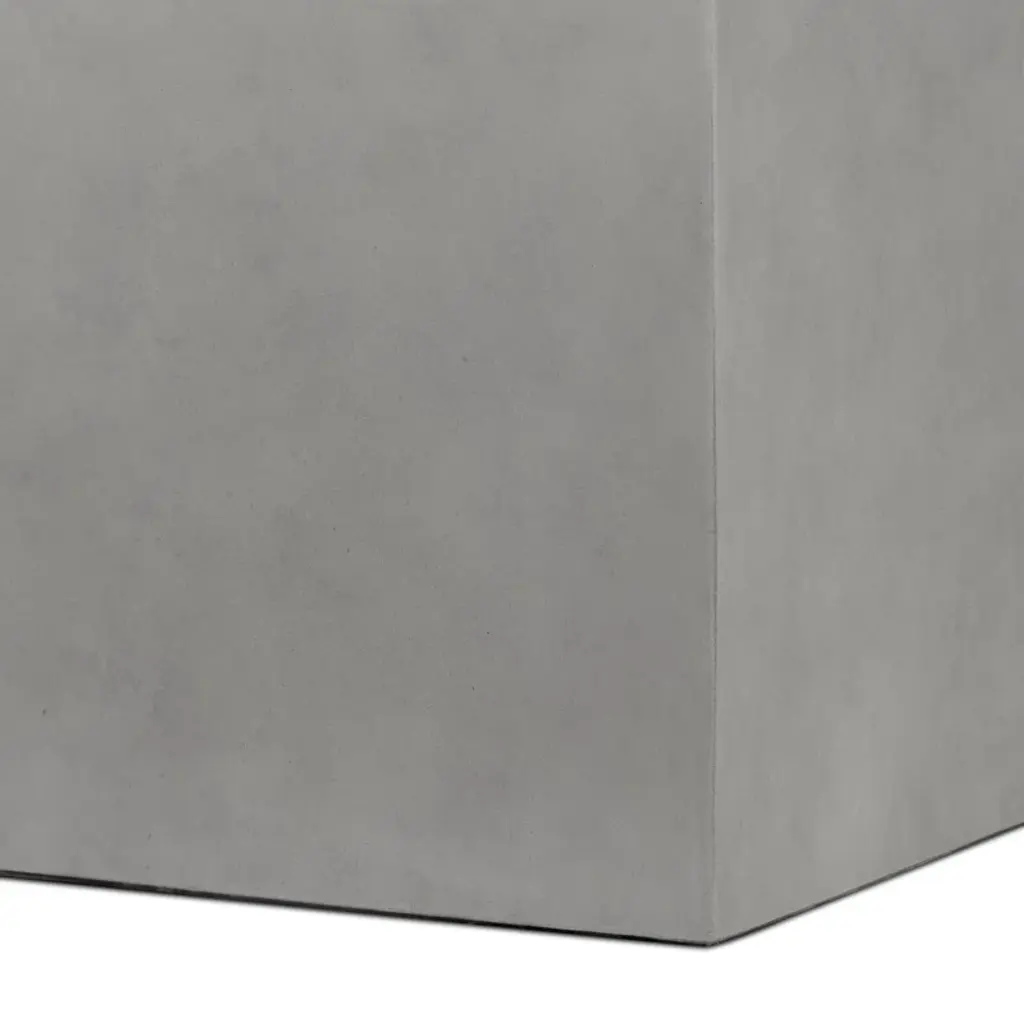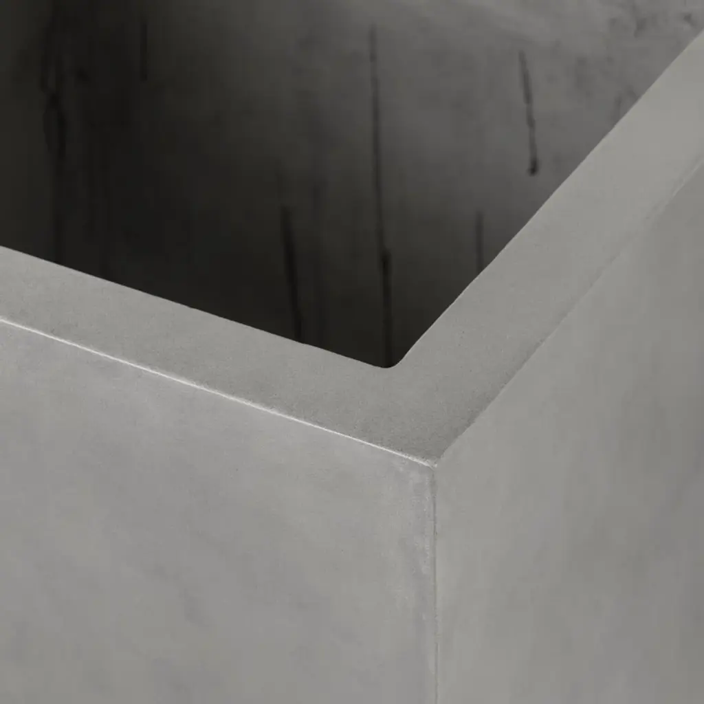 Cast concrete forms a monolithic planter for use indoors and out. Cover or store indoors during inclement weather and when not in use.