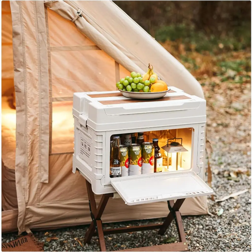 The Naturehike Storage Box is designed for heavy-duty organization and portability, supporting up to 120kg of weight. Its 3-door design allows convenient access even when stacked, while the removable wooden lid provides extra storage compartments. Built with PP body and MDF wooden lid, it ensures durability and stability. The box folds compactly for easy storage in bedrooms, offices, cars, or camping setups. Whether used as a camping table, toy cabinet, or car organizer, this versatile storage solution meets all your indoor and outdoor needs.