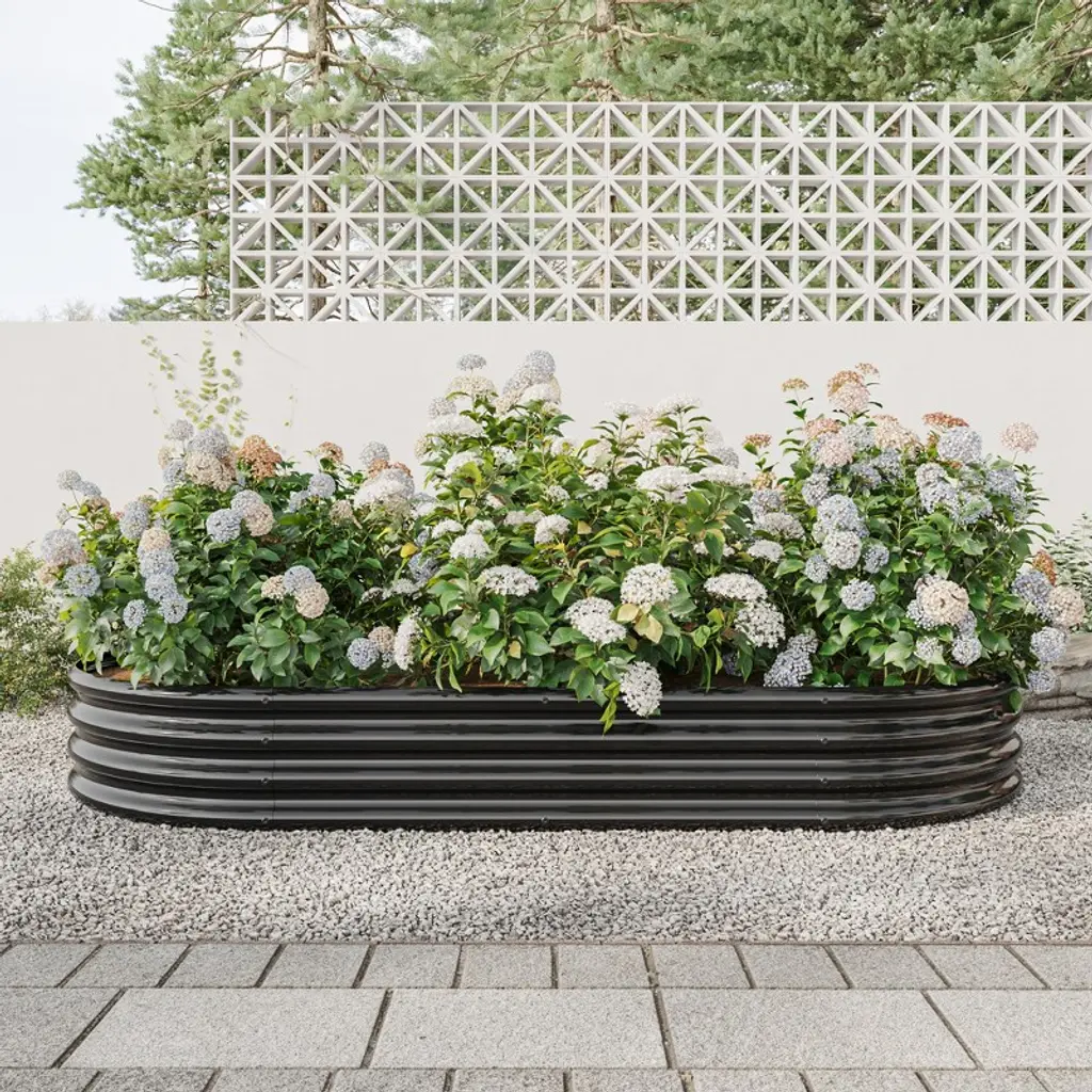 This open-bottom raised garden bed prevents waterlogging, promotes healthy roots, and enhances nutrient absorption, making it ideal for vegetables, herbs, and flowers. The eco-friendly coating ensures toxin-free soil for growing food, while the round design adds strength and durability. Assembly is quick and simple with included hardware—just place, fill with soil, and start planting, no tools required. You can mix and match beds in rows or clusters for a personalized garden layout.