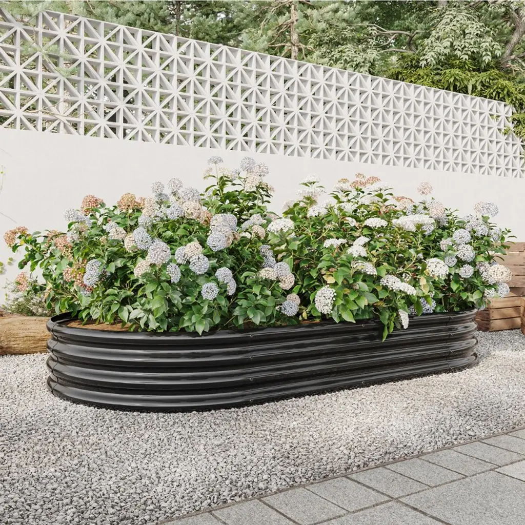 Naysaye 11.4" Tall Rectangle Raised Garedn Planter, Outdoor Garden Raised Planter Box For Flowers, Black, 88.99"*44.68"*11.42"
