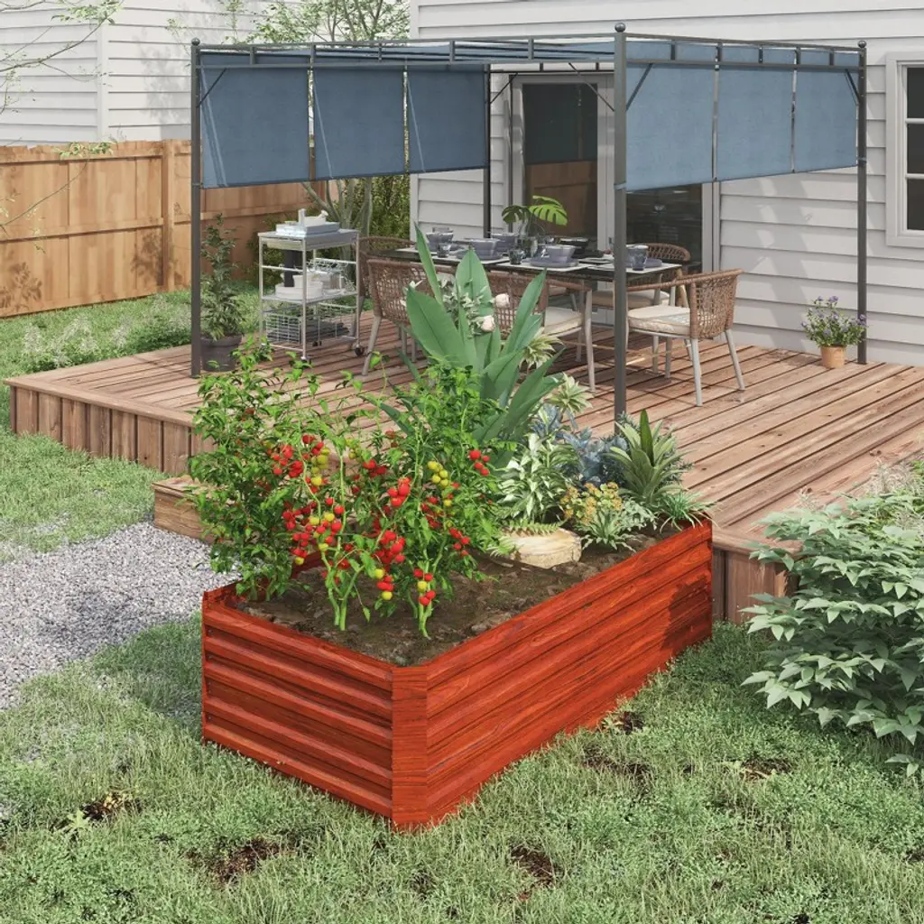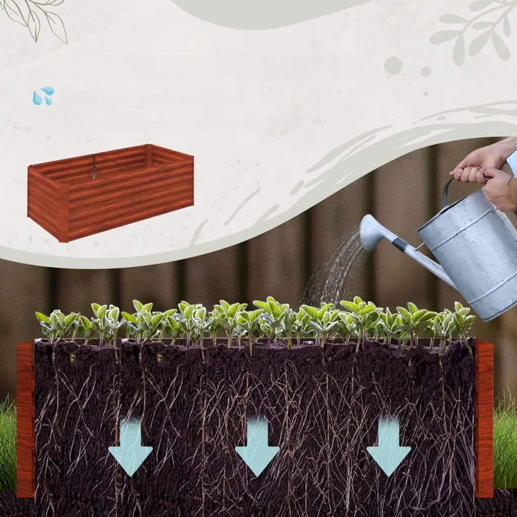 Naysaye 23.25" Tall Rectangle Raised Garedn Planter, Outdoor Garden Raised Planter Box For Flowers, Red, 70.75"*35.5"*23.25"