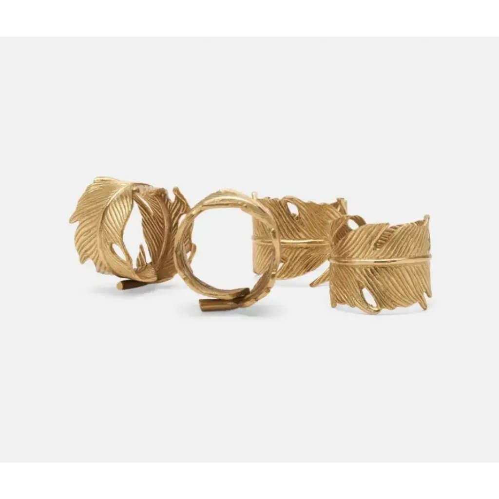 Our Neela set of four feather-shaped napkin rings are crafted in gold brass or antiqued pewter. Blue Pheasant's products are handmade with care by artisans using natural materials. They are not mass produced, so variation between products should be expected, and this is why we love them! It is these irregularities that makes Blue Pheasant what it is—a special brand whose collections are distinctly handmade, full of charm and originality you’ll never find in machine-made products.