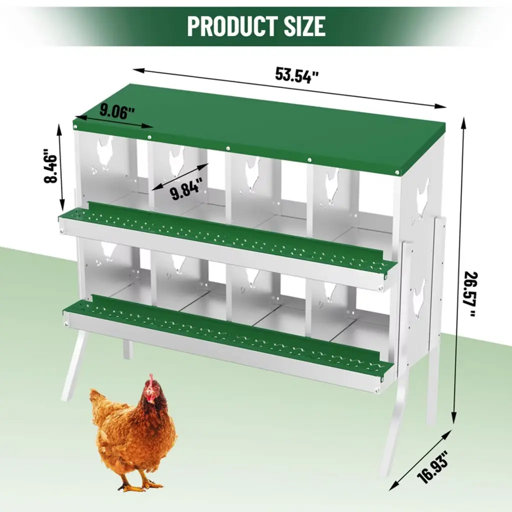 Nesting Boxes For Chickens, Metal Roll Out Laying Nest Box With Perch, Secure Green 8 Holes With Legs