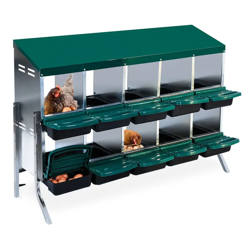 Nesting Boxes For Chickens With Lid Cover - Green 10 Compartments