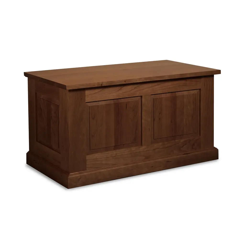 The wood for our New England Shaker Blanket Box is sustainably harvested right here in America from a selection of North American hardwoods, including cherry, maple, oak and walnut. Offering abundant storage for comforters and blankets, this piece is perfect for cutting down on clutter in any bedroom. A very high-end piece of shaker bedroom furniture that will become a future heirloom in your family.Base Price represents blanket box in natural cherryShown in natural cherryMatching furniture available in our New England Shaker Furniture Collection