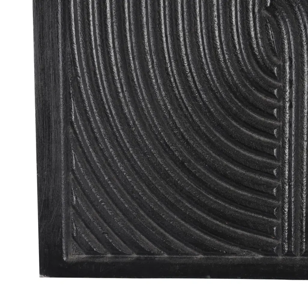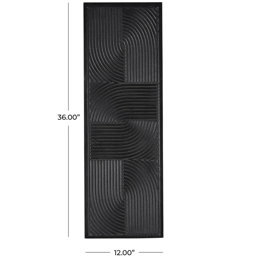 This carved wood wall art will work great in your contemporary or modern style-inspired living room as a stand-alone display. Due to the handmade nature of this item, no two will be alike, there will be slight differences in shape, size, and color. Can be hung vertically using the keyholes on the back; nails and screws are not included. Suitable for indoor use only. This item ships fully assembled in one piece. Made in India. This is a single black-colored wall sculpture. Modern style.
