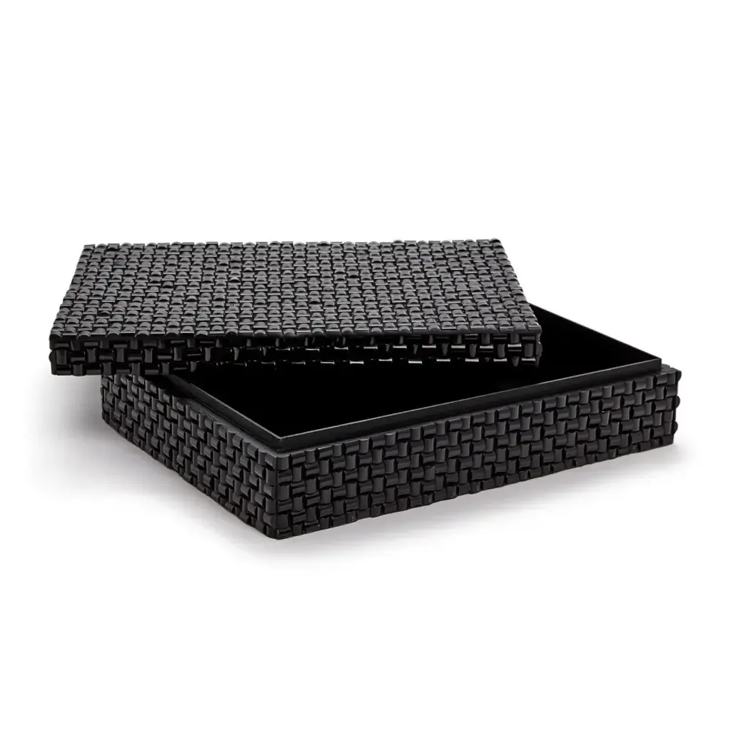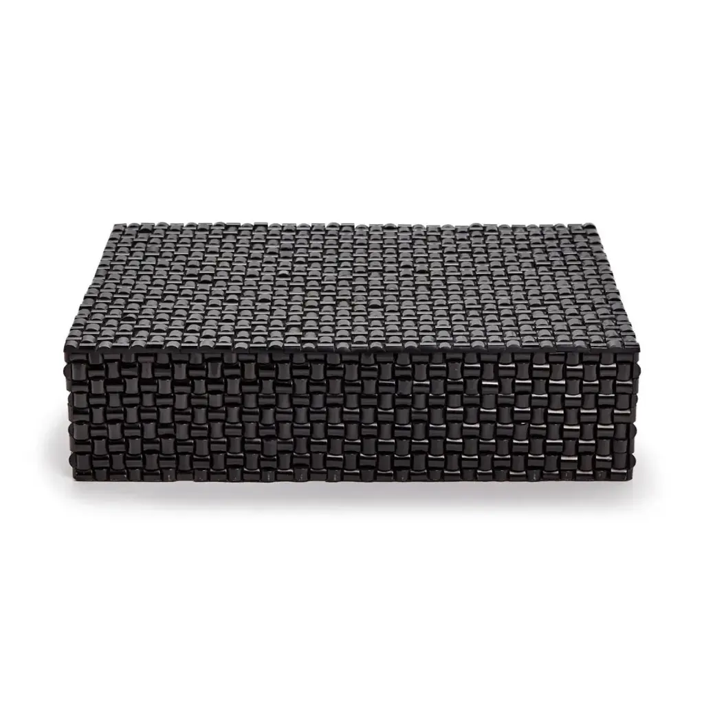 Transform your space with the exquisite charm of this 12" x 16" rectangle covered box. Through the crafting small tiles with a polished ivory look, we've created stylish boxes that exudes a luxurious appeal that is both stylish and functional. Perfect for storing your precious trinkets or adding a touch of sophistication to any room. Handmade with care, each piece is unique and adds a touch of artisanal craftsmanship to your decor.