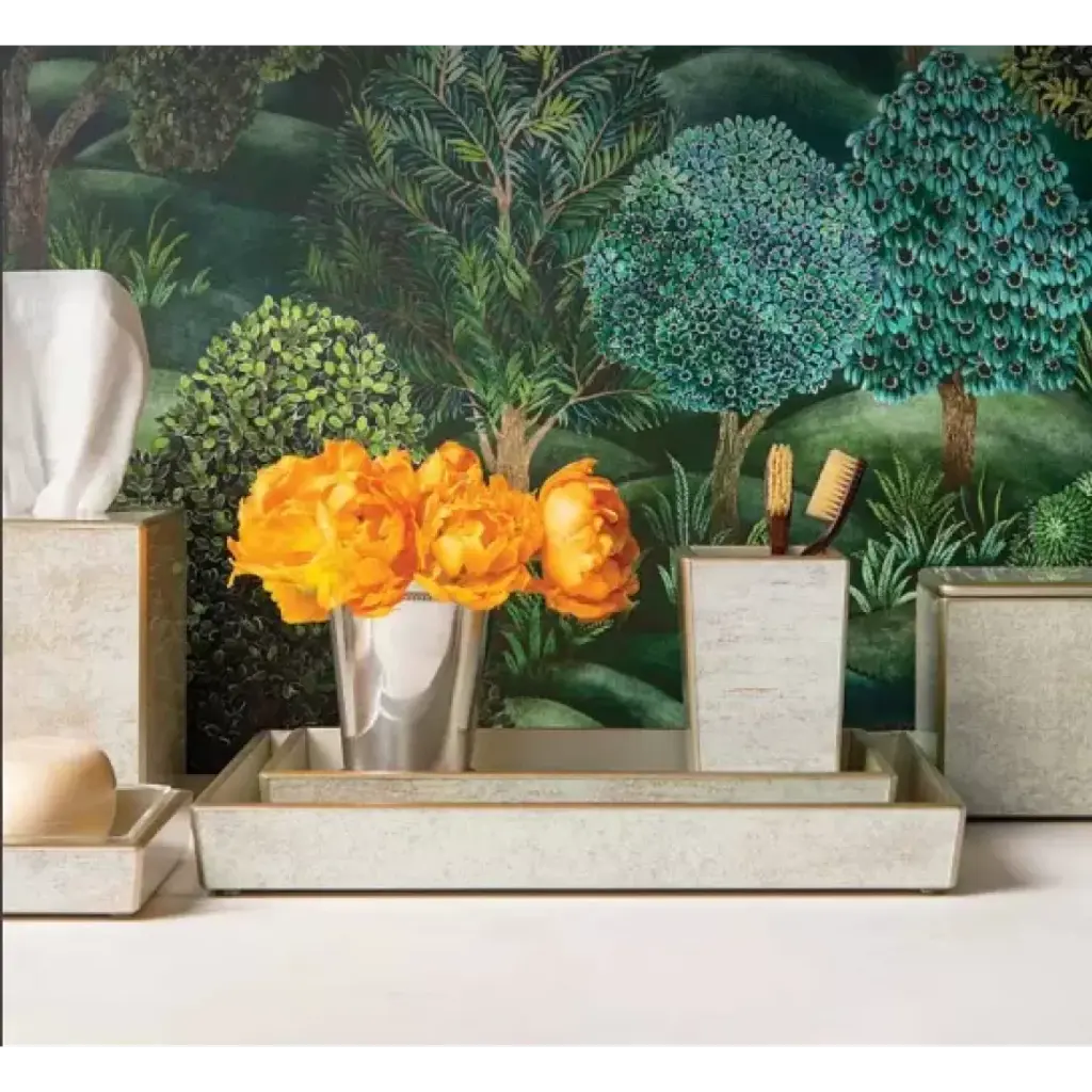 Antiqued mirror is crafted to replicate a Metallic Frost finish. Rounded edges complete the look. The designers at Pigeon & Poodle believe the details of a home are just as important as the furniture. A gorgeous toothbrush holder or handcrafted canister can elevate an entire bath, the perfect frame can heighten the feel of a whole space, and a good-looking storage basket can be your look’s missing link. With thoughtful design and top-notch craftsmanship, Pigeon & Poodle create home accessories with the care and attention typically reserved for larger pieces of décor.