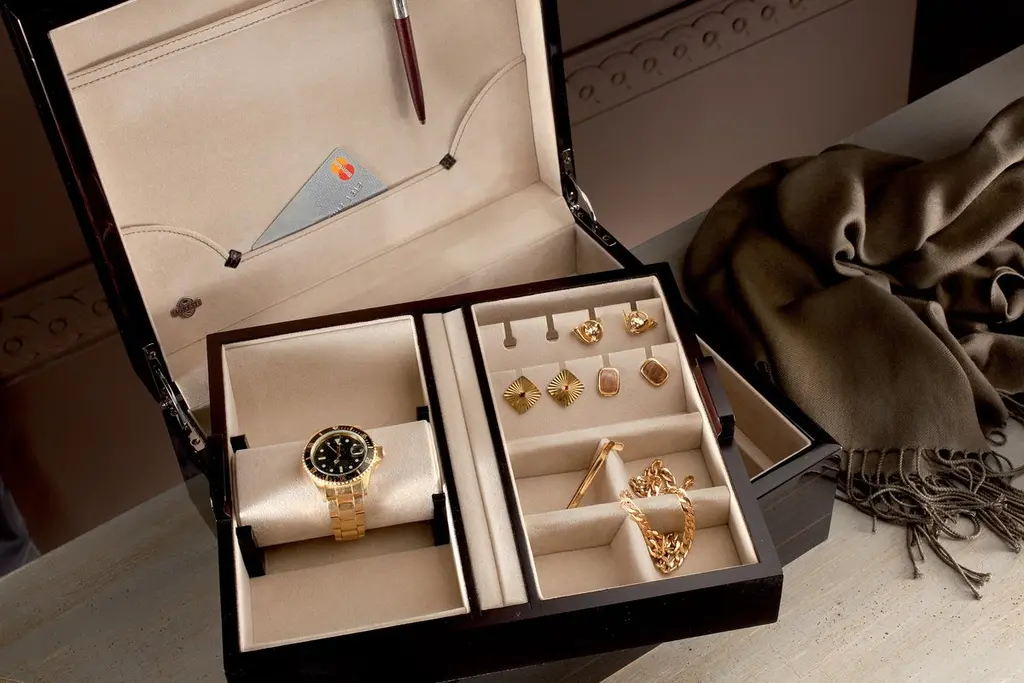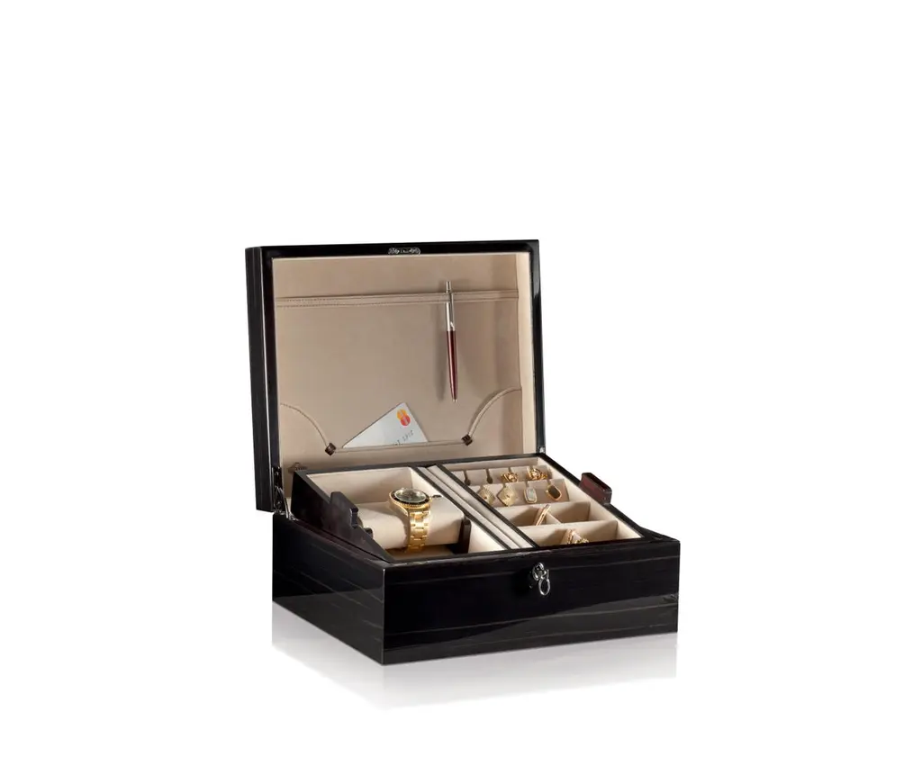 Polished ebony men’s box, removable tray.