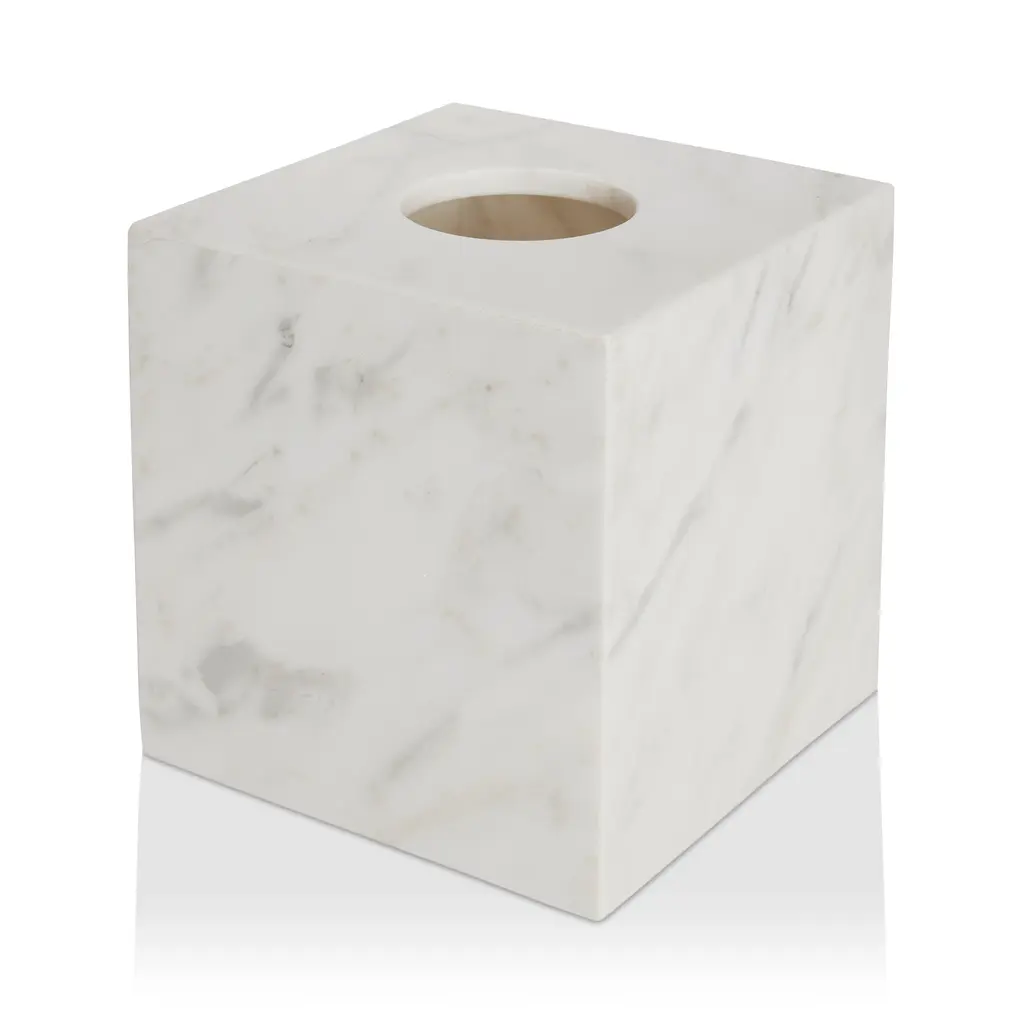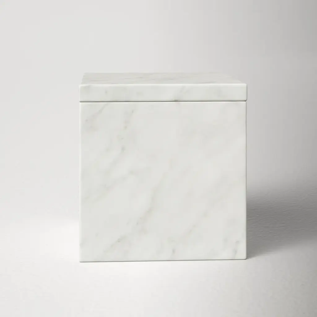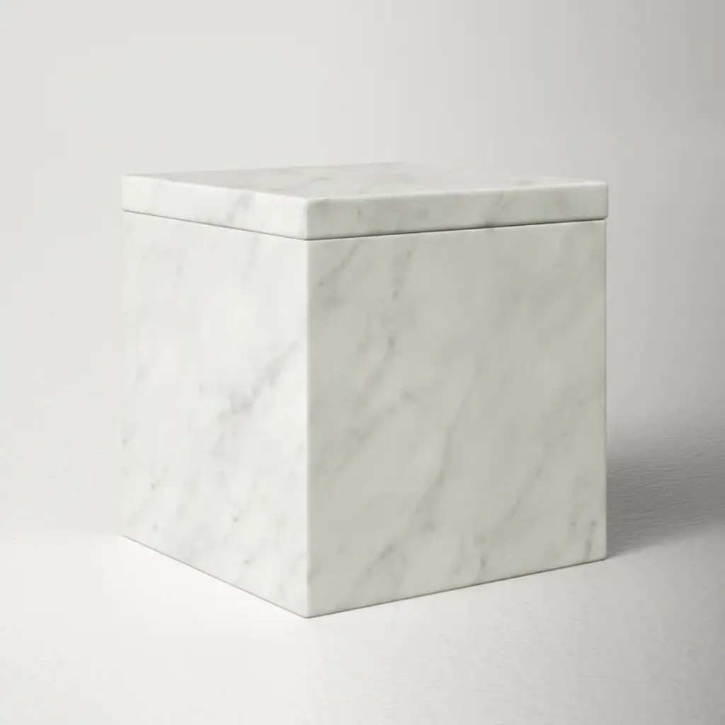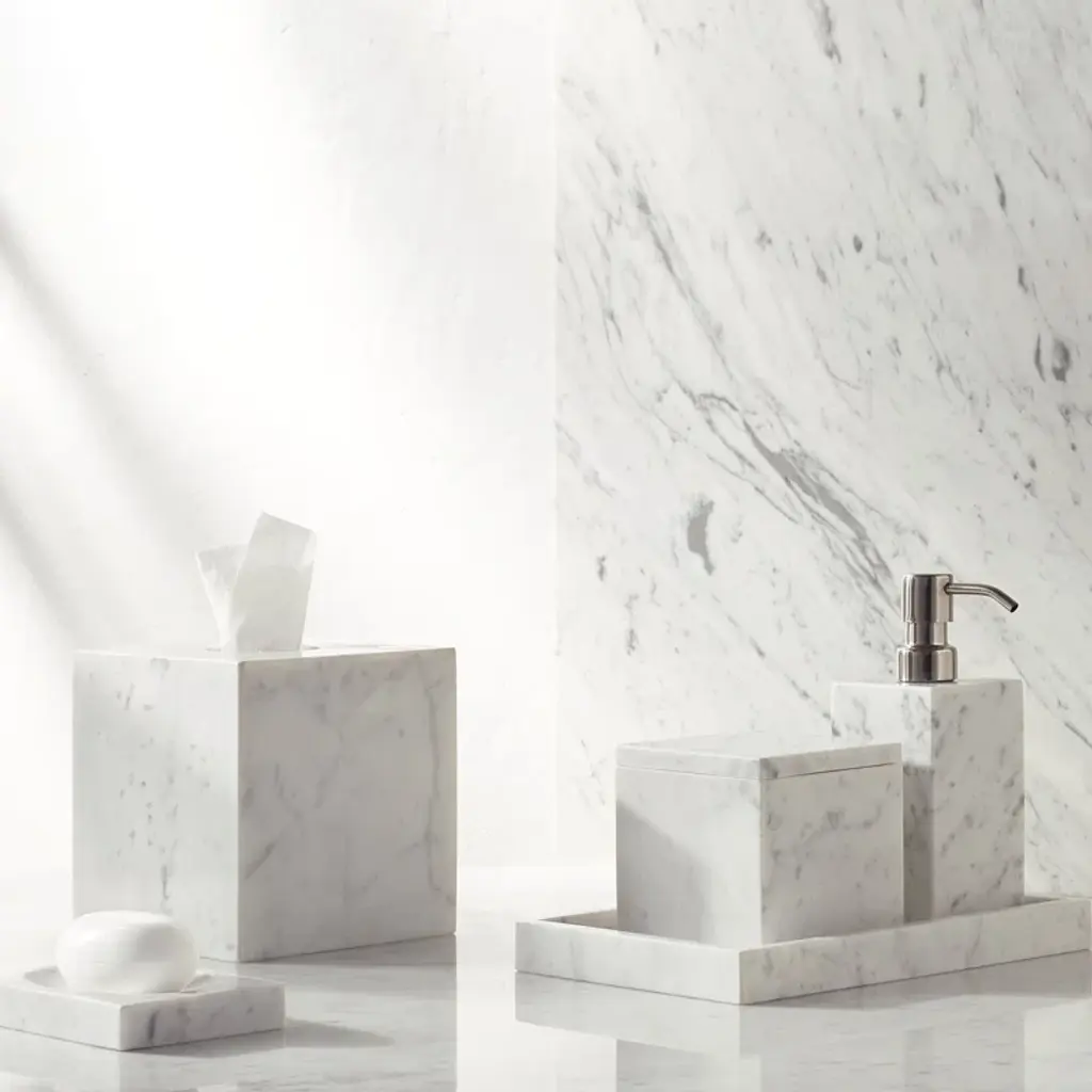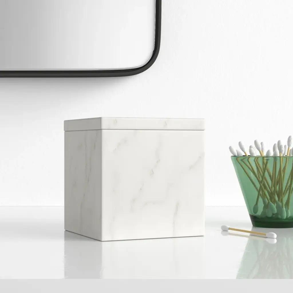 Clean lines and smooth stone. This rectangular bathroom storage container is crafted from white marble, with gray veining that adds dimension and organic detail. Ideal for holding medicines, skin care products, or grooming tools, its sleek silhouette brings a minimal look to your counter or shelf.