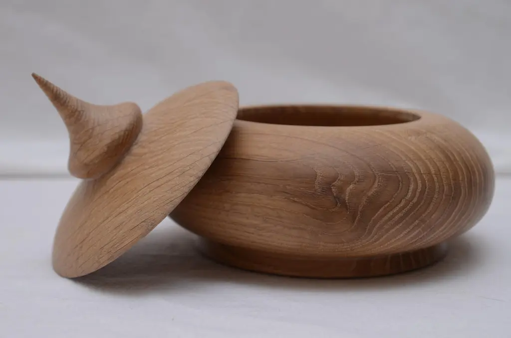 This is an amazing jewelry box. Perfect for storing keys or watches. The box is handmade. Turned from old oak wood. The bright, natural oak color will make you enchanted! Dimensions: 17cmx15cm