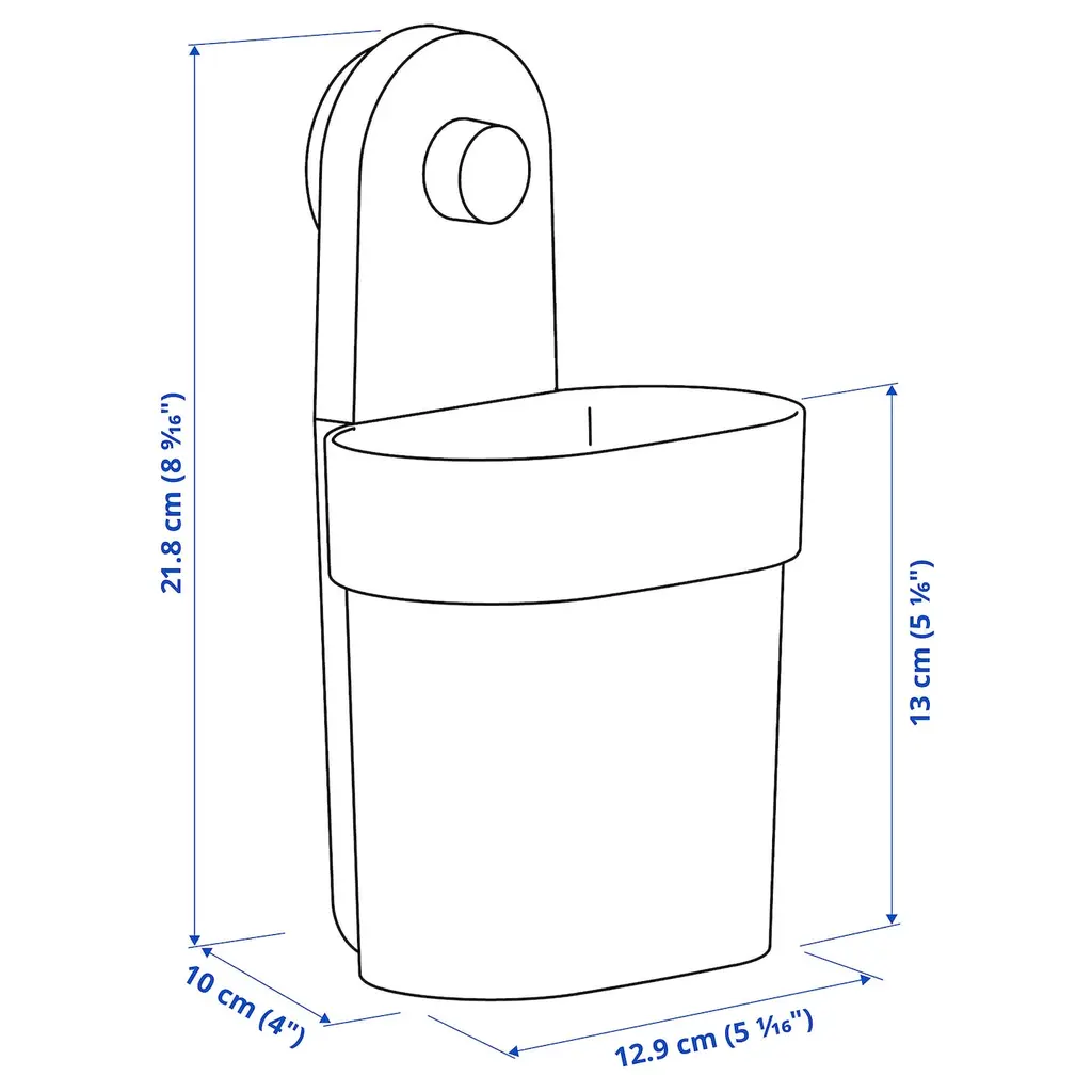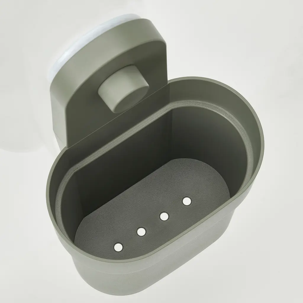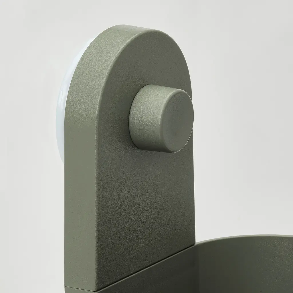 ÖBONÄS Container with suction cup - gray-green. No drilling required thanks to the suction cup with strong grip. Helps free up space on your kitchen worktop while keeping cooking utensils close at hand. The holes at the bottom enable air to circulate and prevent water from collecting.