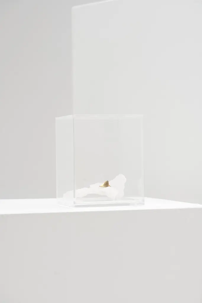 Oceano Series, Shark Fin Stone Sculpture In Acrylic Box