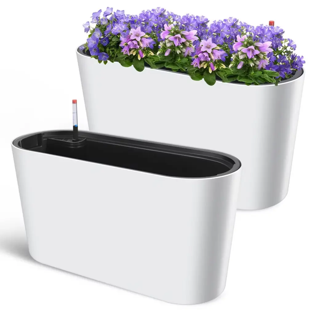 【Durable & Long-lasting】 Crafted from high-grade polypropylene plastic, the tall oval planter boxes are designed to handle tough weather and UV exposure, making them perfect for both indoor and outdoor use while maintaining their color and shape