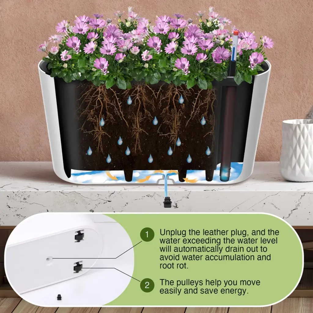 Odk 2 Pack Tall Oval Planter Box With Wheels Modern Flower Pots With Water Level & Removable Insert Bucket For Outdoor Patio, Garden, Window, White
