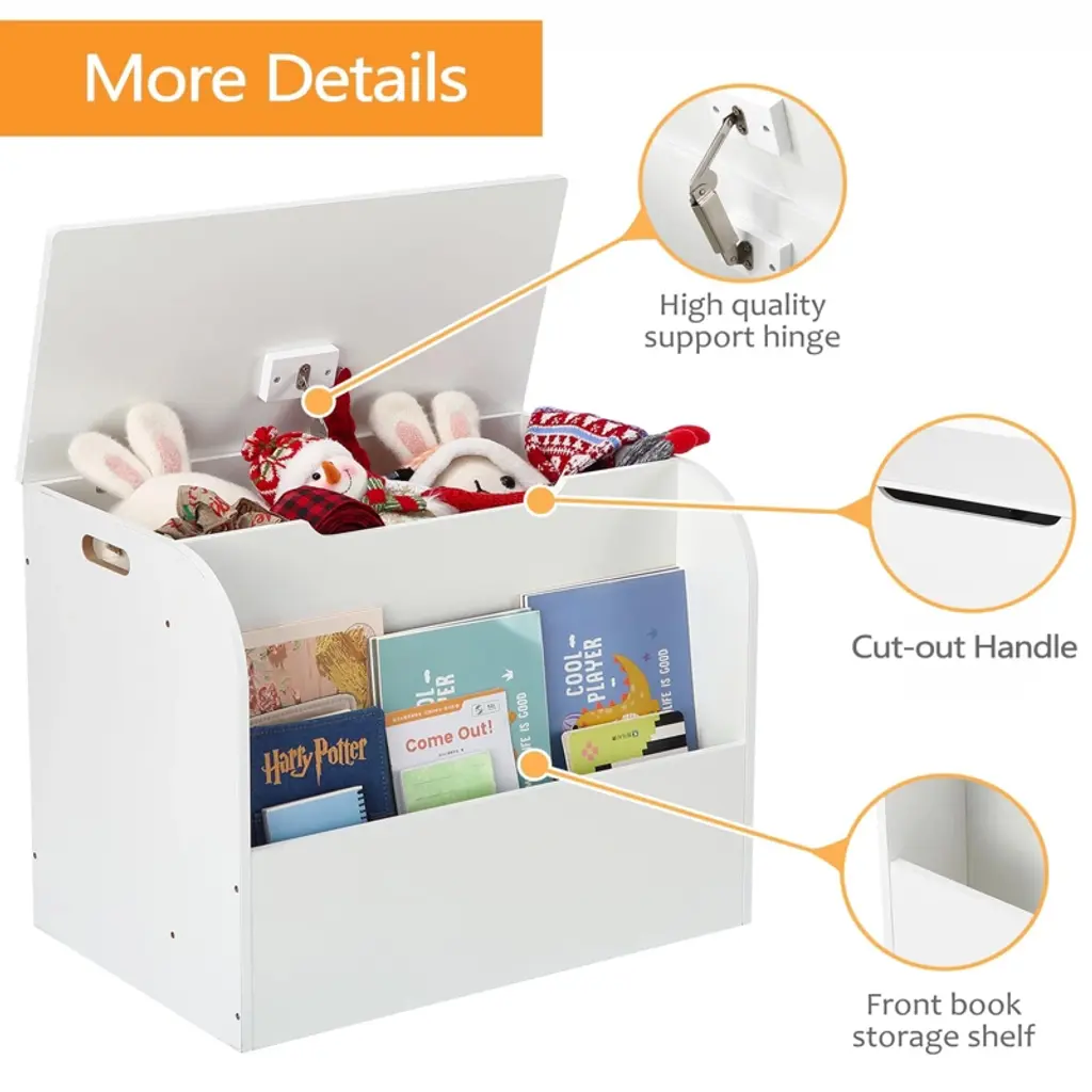 Odk Faironly Wooden Toy Box With Front Bookshelf And Safety Hinges,storage Organizer For Boys And Girls Playroom