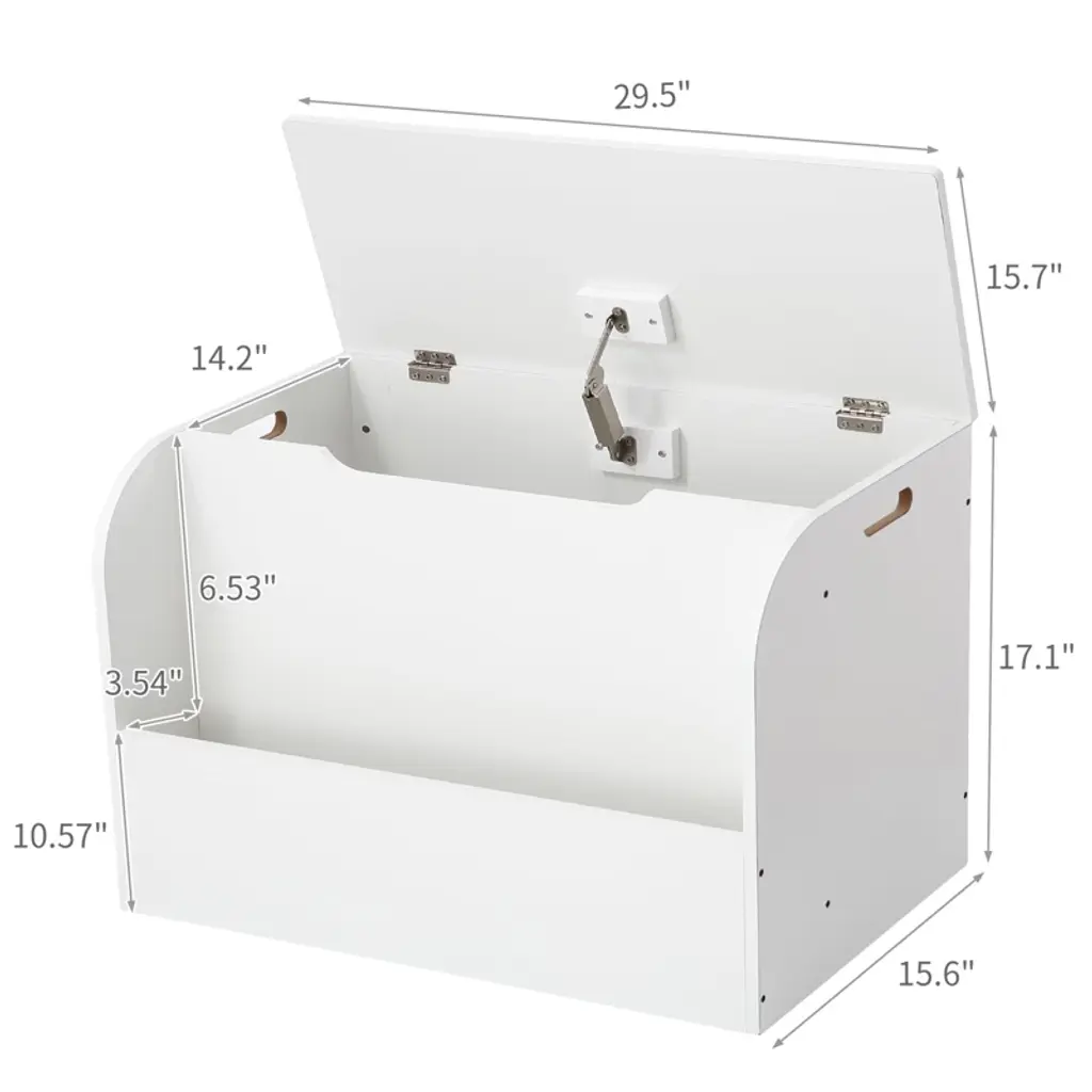 Safe Lid Operation: Featuring 1 lid support hinge and 2 flexible metal hinges, this toy storage box ensures safe opening and closing, preventing sudden closures. The hollow handle design further protects children's fingers from being pinched, promoting a secure play environment