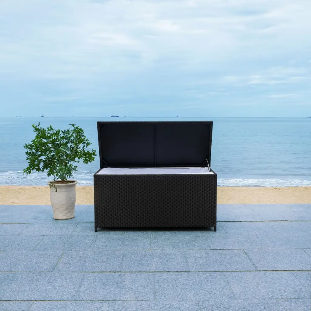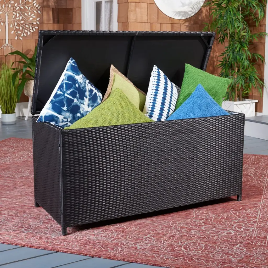 Oliveira Outdoor Cushion Deck Box - Black/white Cushion - Safavieh